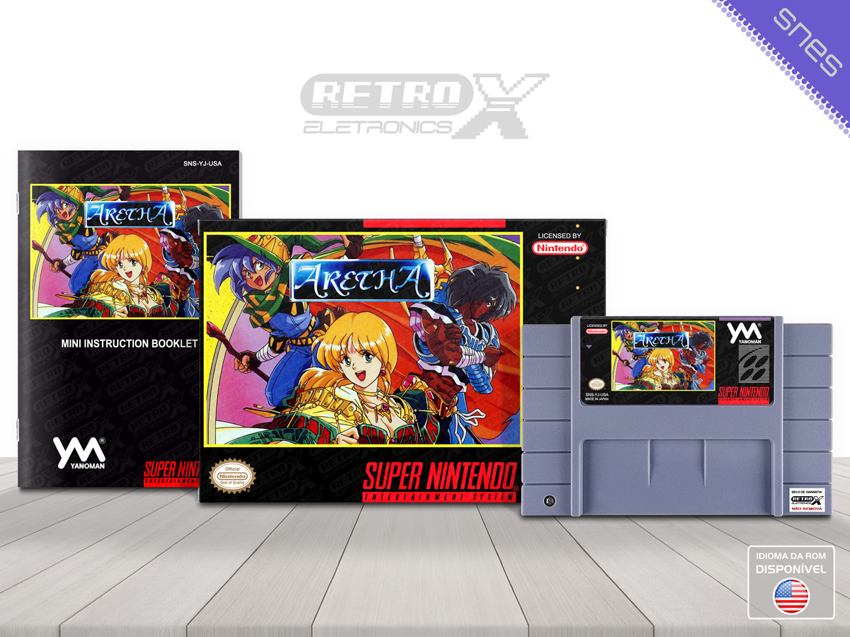 *Aretha* é um clássico **RPG** lançado para o **Super Nintendo Entertainment System (SNES)** em **1991**, desenvolvido pela **Japan Art Media** e publicado pela **Yanoman Corporation**. No jogo, o jogador assume o papel da jovem heroína **Ariel**, que parte em uma jornada épica para encontrar um lendário artefato mágico capaz de salvar sua terra após um poderoso mal ressurgir, ameaçando o equilíbrio do mundo.