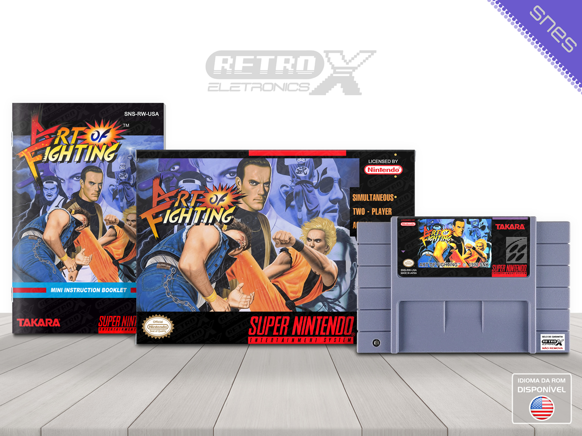 *Art of Fighting* é um clássico jogo de luta para o **Super Nintendo Entertainment System (SNES)**, desenvolvido e publicado pela **SNK**. Lançado em **1992**, o título marcou época por ser um dos primeiros jogos de luta a introduzir elementos como barra de energia estendida, sistema de troca de rounds e personagens com estilos de luta distintos.