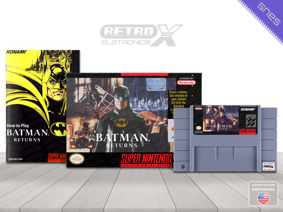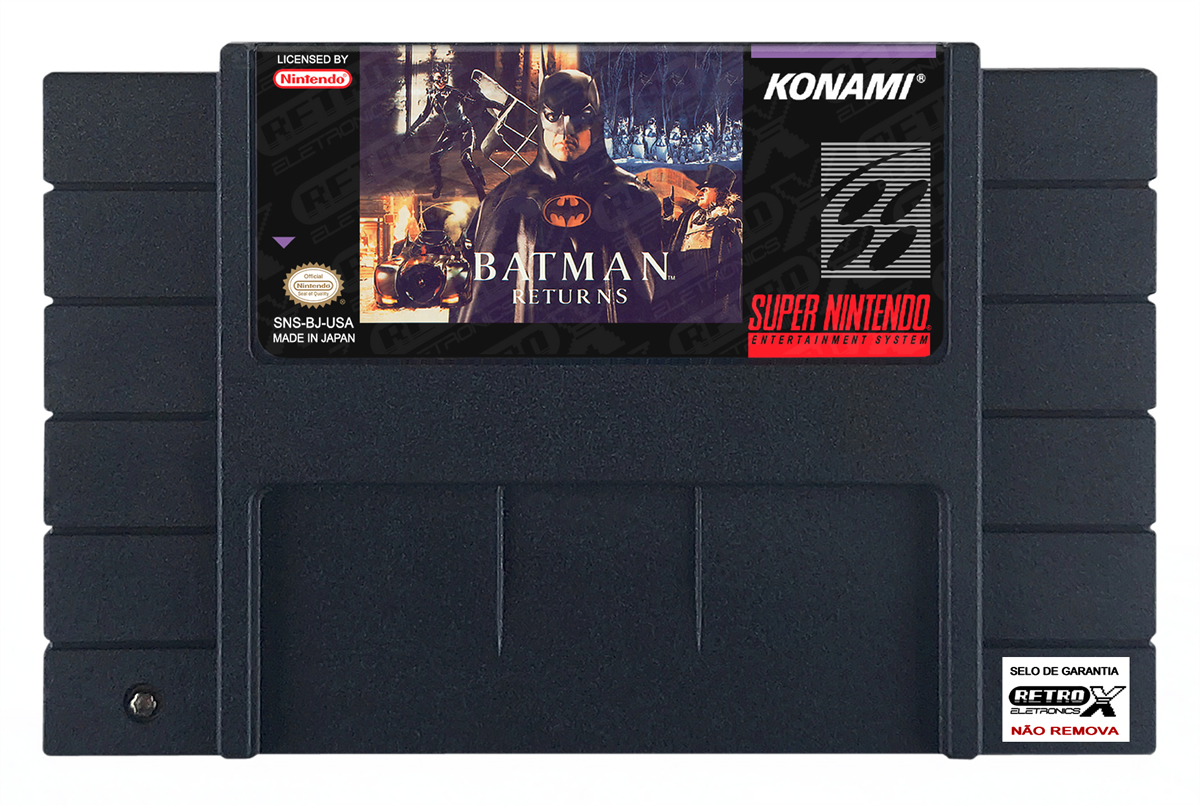 *Batman Returns* é um jogo de ação e *beat ’em up* para o **Super Nintendo Entertainment System (SNES)**, baseado no filme homônimo da franquia *Batman*. Desenvolvido pela **Konami** e lançado em **1993**, o título coloca o jogador no controle do icônico **Batman**, que deve proteger **Gotham City** contra criminosos e vilões como **The Penguin** (O Pinguim) e **Catwoman**, em uma série de desafios cheios de combate e ação.