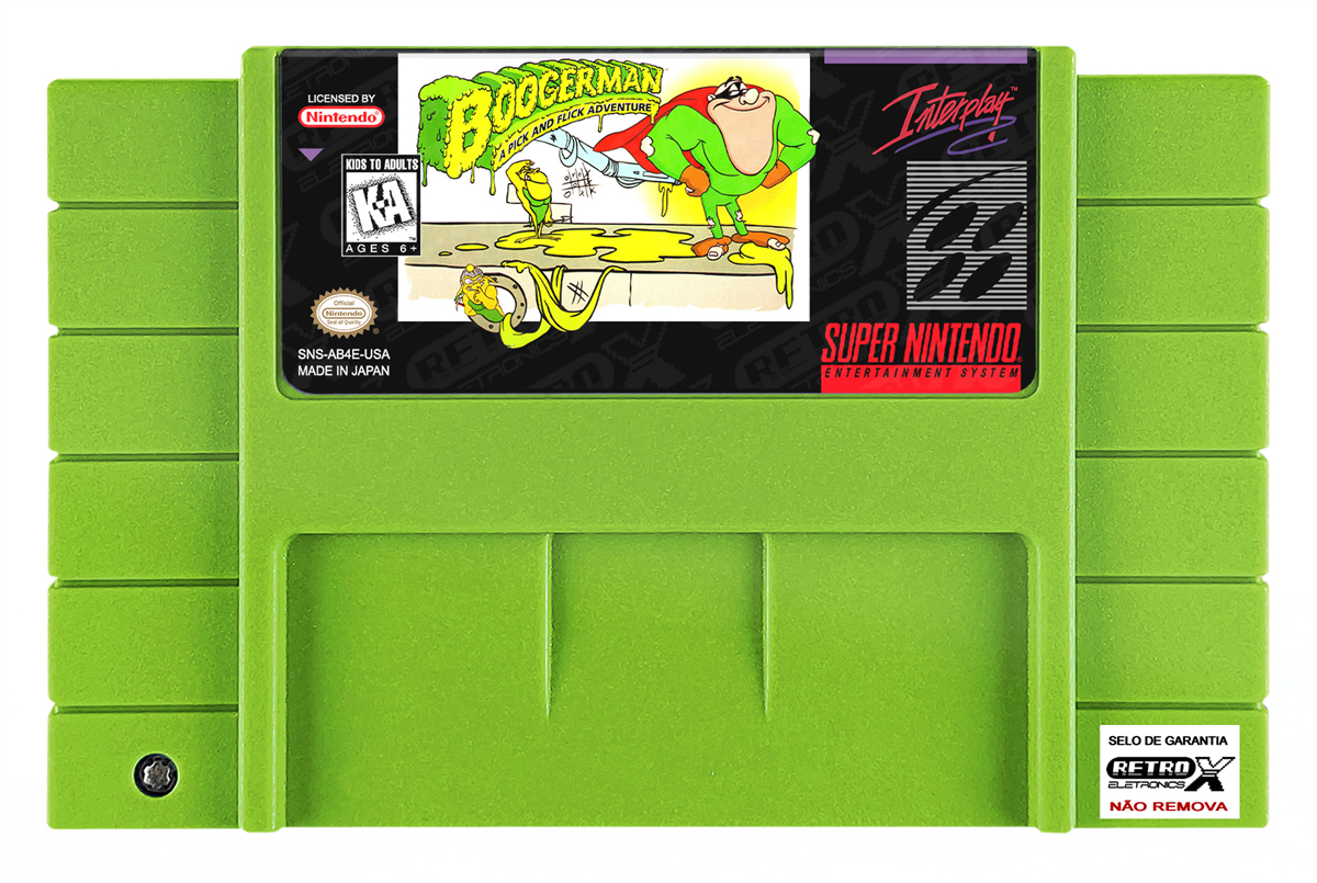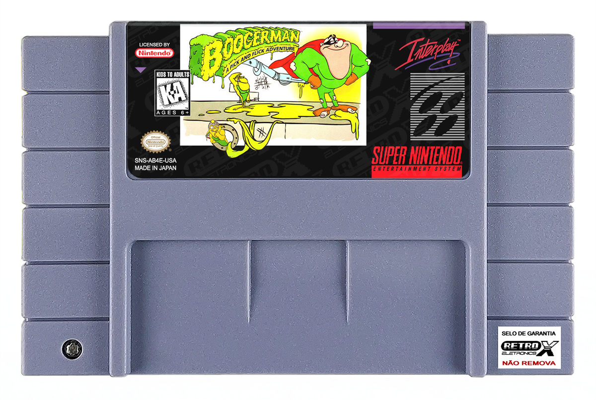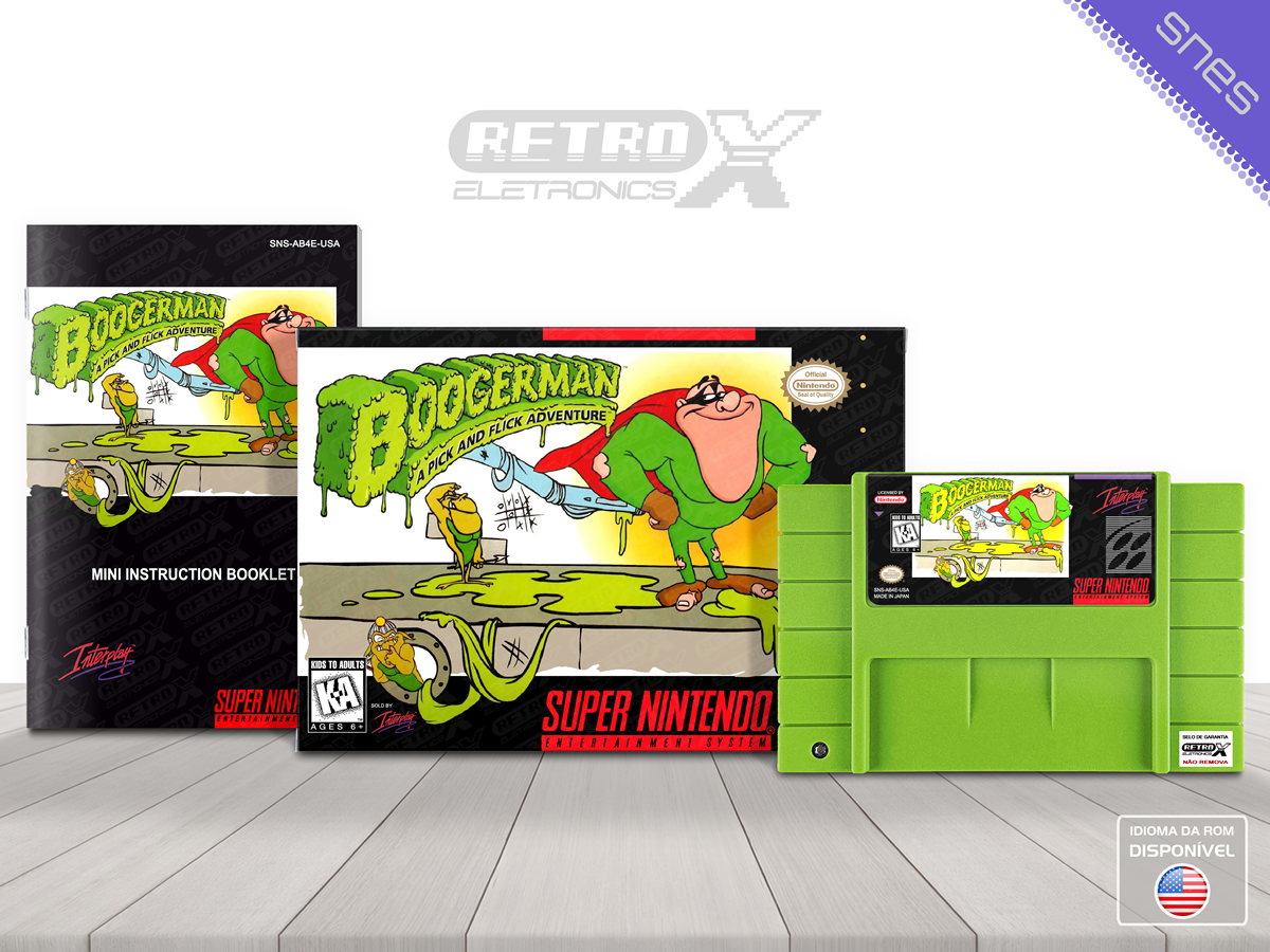 *Boogerman: A Pick and Flick Adventure* é um jogo de plataforma e ação lançado para o **Super Nintendo Entertainment System (SNES)** em **1994**, desenvolvido pela **Interplay Productions**. O título destaca‑se por seu humor irreverente e estilo único, colocando o jogador no controle do herói excêntrico **Boogerman**, um aventureiro que utiliza seus “poderes” inusitados para enfrentar inimigos e resolver desafios enquanto atravessa fases cheias de situações bizarras e engraçadas.