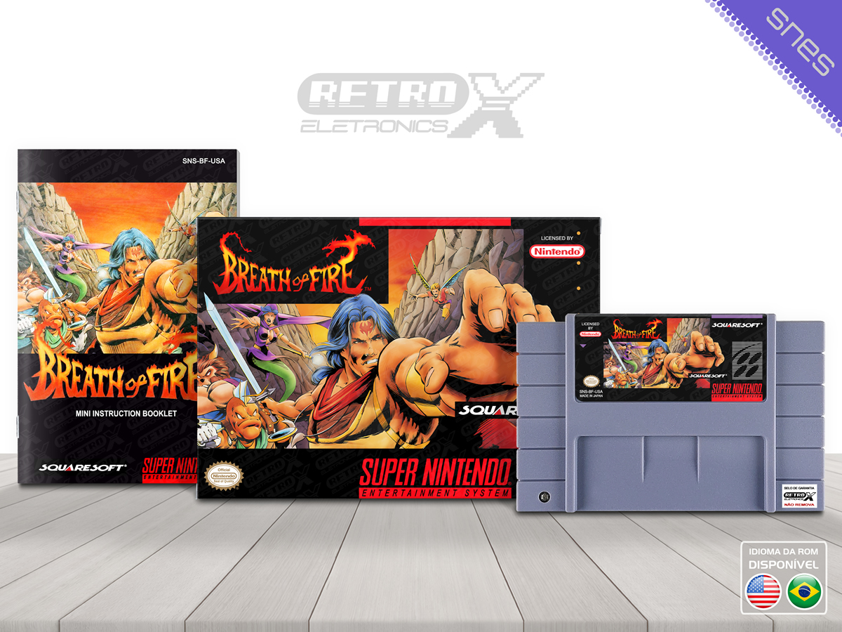 *Breath of Fire* é um clássico **RPG** lançado para o **Super Nintendo Entertainment System (SNES)** em **1993**, desenvolvido e publicado pela **Capcom**. O título apresenta uma aventura épica em um mundo de fantasia, onde o jovem herói **Ryu** parte em uma jornada para salvar sua irmã e proteger sua terra de uma ameaça crescente, descobrindo segredos sobre seu passado e descobrindo poderes misteriosos ao longo do caminho.