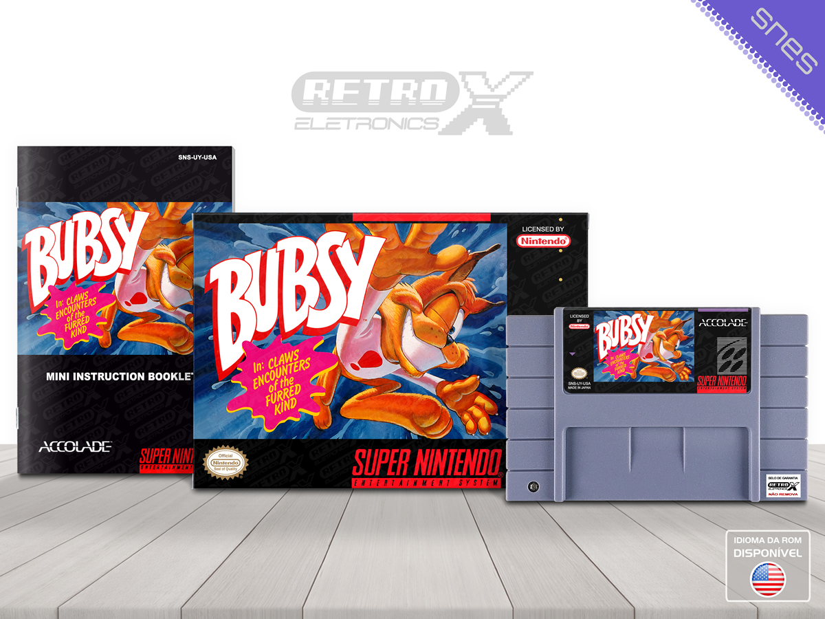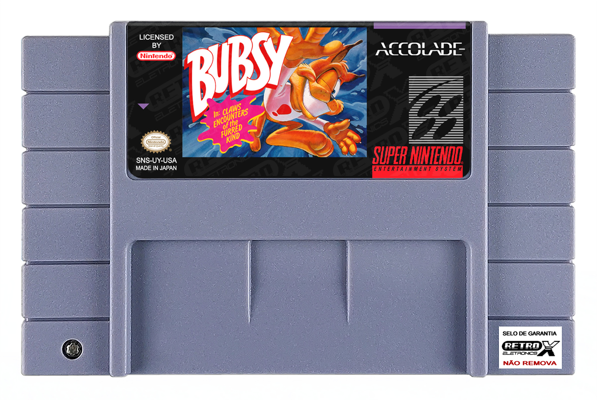 *Bubsy* é um jogo de plataforma lançado para o **Super Nintendo Entertainment System (SNES)** em **1993**, desenvolvido pela **Tennic** e publicado pela **Accolade**. O título apresenta o personagem principal **Bubsy the Bobcat**, um gato aventureiro com atitude, que parte em uma missão cheia de ação para recuperar as **esferas de poder** roubadas pelos vilões, enfrentando obstáculos e inimigos em fases coloridas e desafiadoras.