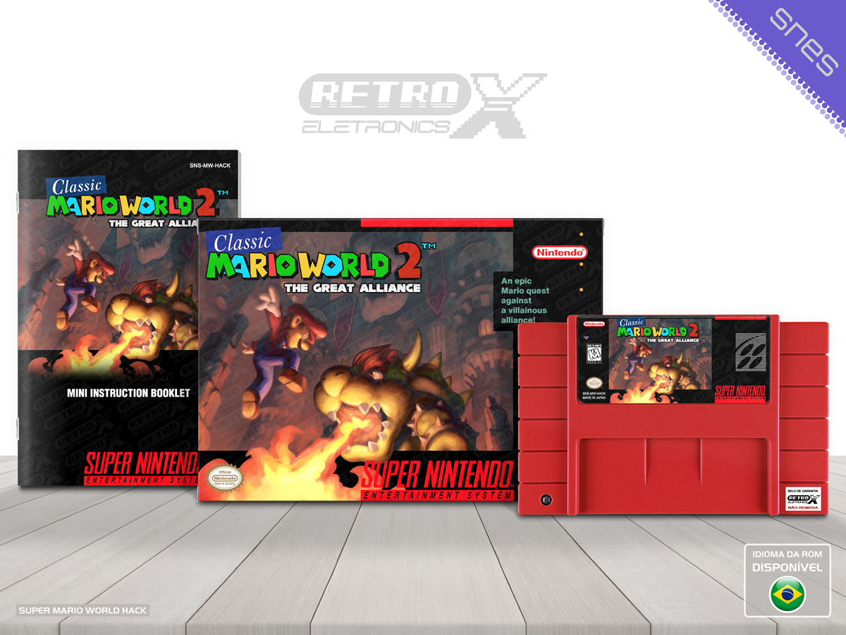“Classic Mario World 2 – The Great Alliance” é um *hack* de *Super Mario World* para Super Nintendo que serve como sequência direta de *Classic Mario World 1*. O projeto segue o estilo clássico de plataforma do jogo original, trazendo novos episódios, fases totalmente redesenhadas e uma história que conecta os mundos e eventos dos hacks anteriores. É conhecido por oferecer uma experiência aprofundada de exploração e desafios contínuos entre as versões, com design de nível detalhado e revisões que ampliam o universo dos *hacks* “Classic Mario World”.