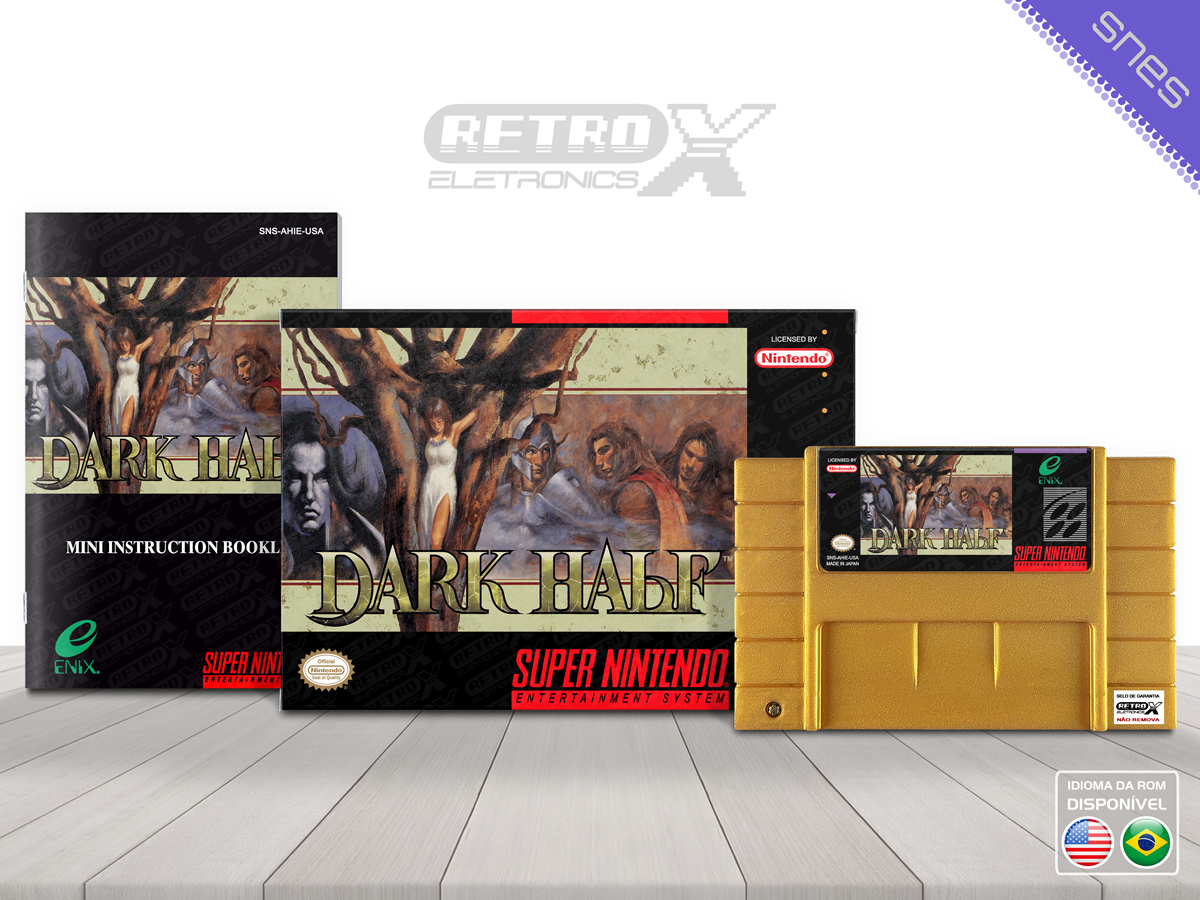 *Dark Half* é um **RPG único e sombrio** lançado exclusivamente no **Japão** para **Super Famicom (equivalente ao Super Nintendo)** em **1996**, desenvolvido pela **Westone Bit Entertainment** e publicado pela **Enix**. O jogo combina combate por turnos com exploração de mundo e narrativa sombria, diferenciando‑se por permitir ao jogador controlar tanto o herói quanto o vilão ao longo da história.