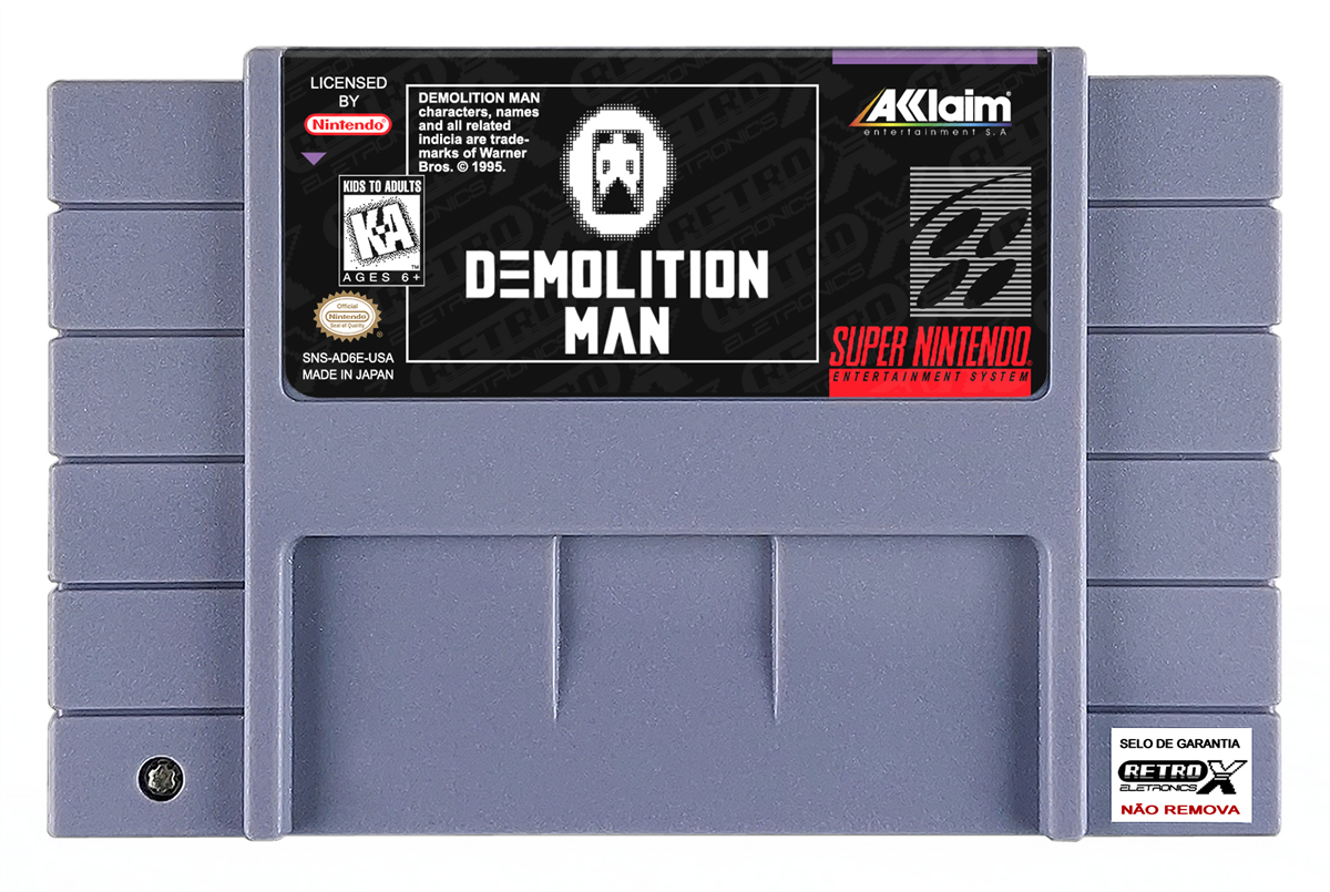 *Demolition Man* é um jogo de **ação e tiro com perspectiva lateral** lançado para o **Super Nintendo Entertainment System (SNES)** em **1994**, desenvolvido pela **Probe Entertainment** e publicado pela **Acclaim Entertainment**. O título é baseado no filme de mesmo nome estrelado por **Sylvester Stallone** e **Wesley Snipes**, trazendo uma experiência de ação intensa em um futuro distópico onde a lei e a ordem são levadas ao extremo.