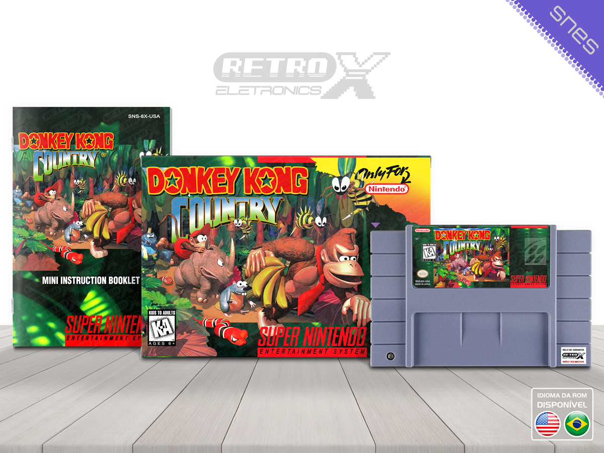 *Donkey Kong Country* é um jogo de **plataforma e aventura** lançado para o **Super Nintendo Entertainment System (SNES)** em **1994**, desenvolvido pela **Rare** e publicado pela **Nintendo**. O título marcou o retorno de **Donkey Kong**, o famoso gorila, e introduziu a nova geração de personagens, incluindo **Diddy Kong**. A história segue Donkey Kong e Diddy Kong enquanto eles tentam recuperar seu estoque de bananas roubado pelo vilão **King K. Rool** e seus Kremlings.