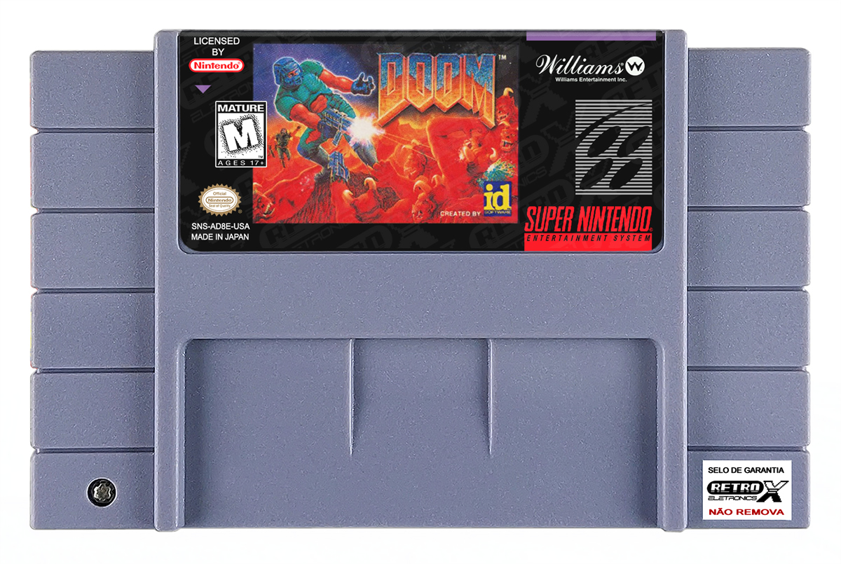 *DOOM* é um jogo de **tiro em primeira pessoa (FPS)** lançado para o **Super Nintendo Entertainment System (SNES)** em **1995**, desenvolvido pela **id Software** e portado para o SNES pela **Williams Entertainment**. Originalmente lançado para PCs, *DOOM* se tornou um dos títulos mais influentes do gênero FPS, e sua versão para o SNES trouxe a ação intensa e os elementos de terror de ficção científica para os consoles de 16 bits, embora com algumas limitações devido ao hardware do SNES.