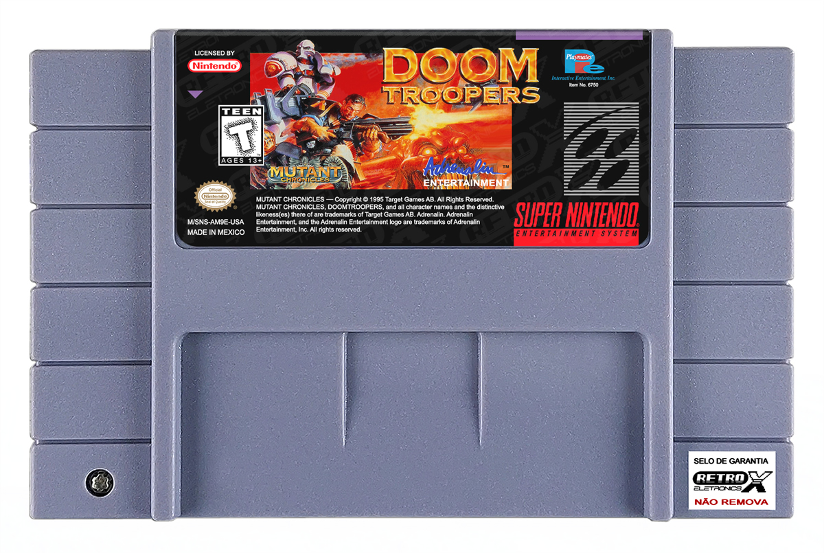 *Doom Troopers* é um jogo de **ação e tiro** lançado para o **Super Nintendo Entertainment System (SNES)** em **1995**, desenvolvido pela **Crave Entertainment**. Baseado no universo do jogo de cartas e RPG *Mutant Chronicles*, *Doom Troopers* coloca os jogadores no controle de dois soldados de elite, **Max** e **Klaus**, em uma missão para destruir a ameaça dos **Dark Legion**, uma força militar do mal que tenta dominar o mundo.