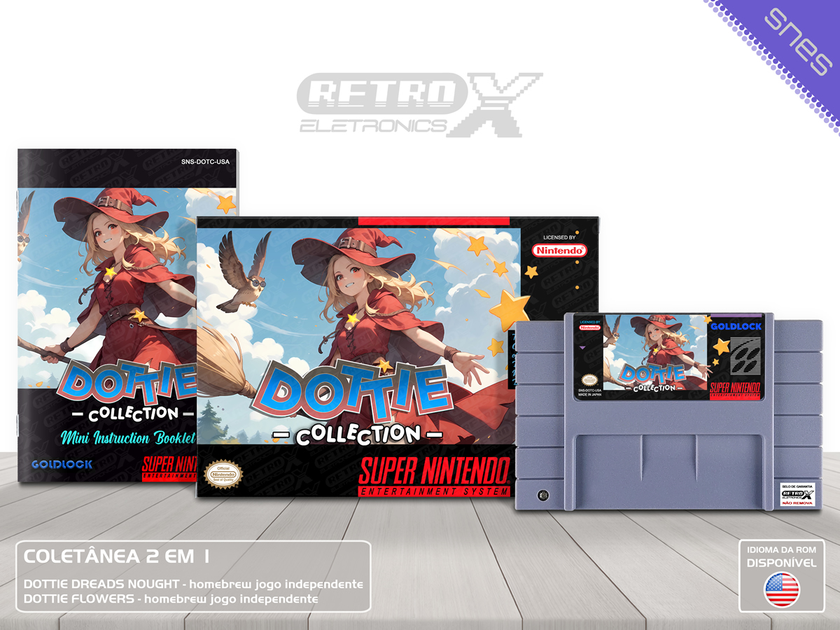 A Dottie Collection é uma coletânea de dois jogos homebrew independentes, criados por desenvolvedores apaixonados por retro-gaming, para o Super Nintendo Entertainment System (SNES). Ambos os jogos oferecem uma experiência única e inovadora, trazendo mecânicas e visuais originais para os fãs da plataforma.