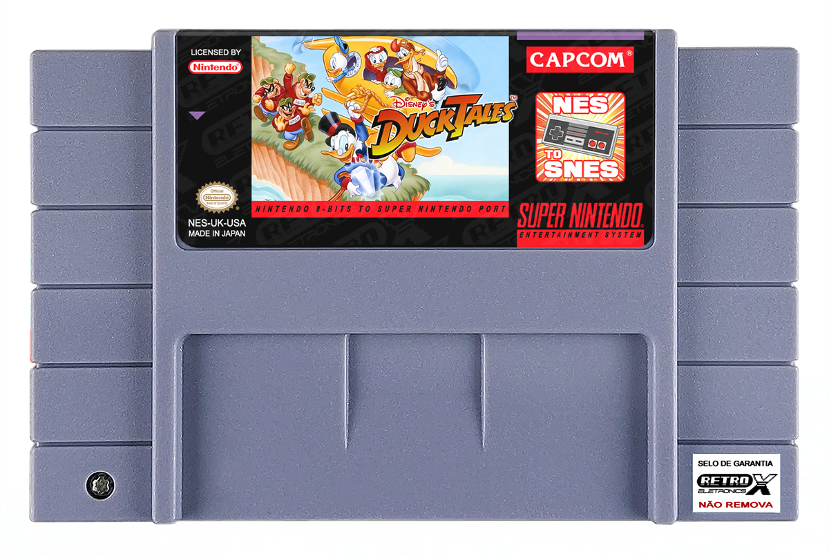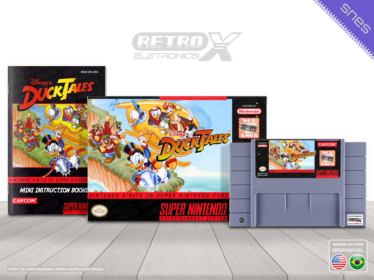 DuckTales para o NES (Nintendo) foi lançado originalmente em 14 de setembro de 1989 na América do Norte, produzido pela Capcom. Neste port fiel para o Super Nintendo Entertainment System (SNES), o clássico jogo de plataforma 2D traz a jogabilidade não-linear que ficou famosa por seu estilo único de exploração. O jogador controla o Tio Patinhas, que viaja ao redor do mundo para coletar riquezas e enfrentar desafios com sua bengala como principal ferramenta de combate e movimentação.