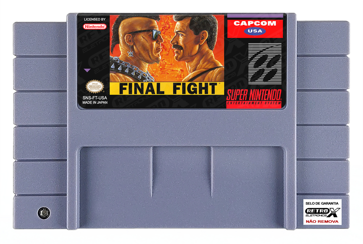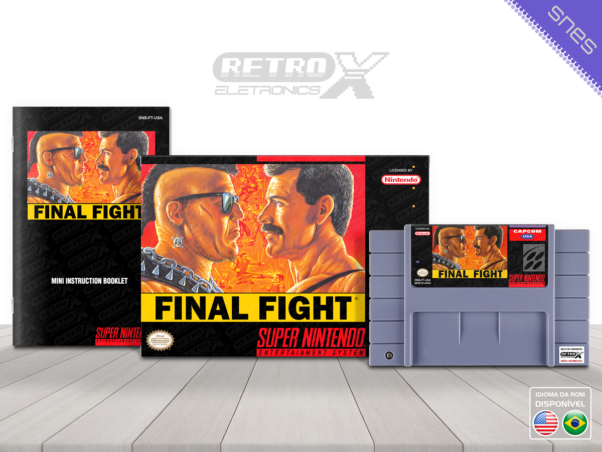 *Final Fight* é um **Beat ‘em Up** clássico lançado para o **Super Nintendo Entertainment System (SNES)** em **1991**, desenvolvido e publicado pela **Capcom**. Originalmente lançado como um título de arcade, *Final Fight* foi adaptado para o SNES, mantendo a ação intensa e os combates de rua que fizeram o jogo ser um dos maiores sucessos de sua época. O jogo segue **Haggar**, o prefeito de Metro City, enquanto ele, com a ajuda de seus aliados **Cody** e **Guy**, tenta resgatar sua filha **Jessica**, sequestrada pela gangue criminosa **Mad Gear**.