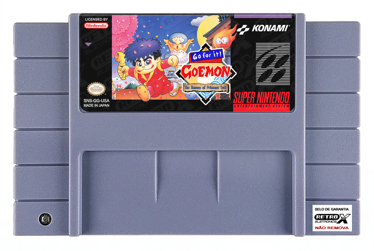 O estilo artístico do jogo mistura referências ao folclore japonês com humor e elementos de paródia, criando uma experiência única entre os jogos do SNES. *Goemon* oferece tanto ação rápida quanto momentos de exploração e interação, podendo ser jogado sozinho ou com um segundo jogador no modo cooperativo.