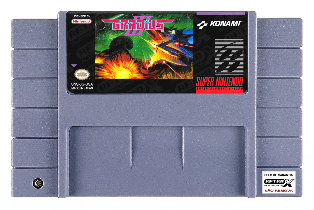 Gradius 3 é um jogo de tiro espacial lançado para o Super Nintendo Entertainment System (SNES) em 1991, desenvolvido pela Konami. Faz parte da famosa série de jogos *Gradius*, oferecendo uma experiência de combate intergaláctico intensa e desafiadora.