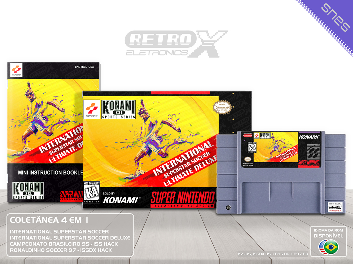 A International Superstar Soccer Ultimate Deluxe é uma coletânea que traz 4 grandes títulos da famosa franquia de futebol *International Superstar Soccer* para o Super Nintendo Entertainment System (SNES). Com jogabilidade rápida, times e torneios modificados, essa coleção oferece uma experiência completa de futebol, com edições especiais e hacks que tornam o jogo ainda mais emocionante.