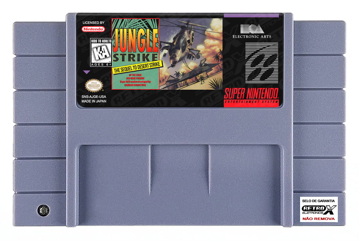 Jungle Strike é um jogo de ação, tiro lançado para o Super Nintendo Entertainment System (SNES) em 1993, desenvolvido pela Electronic Arts. O jogo é a sequência de *Desert Strike* e coloca o jogador no comando de um helicóptero de combate em uma série de missões para combater terroristas e outras ameaças globais. Com uma jogabilidade baseada em combate aéreo e terrestre, o jogador deve completar uma variedade de objetivos, incluindo resgatar reféns, destruir alvos inimigos e proteger aliados.