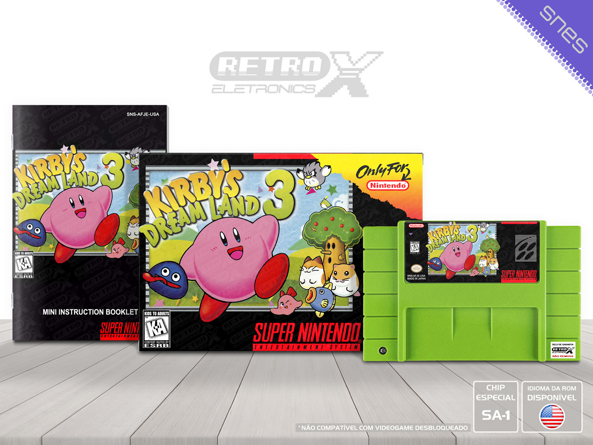 Kirby’s Dream Land 3 é um jogo de plataforma, aventura lançado para o Super Nintendo Entertainment System (SNES) em 1997, desenvolvido pela HAL Laboratory. O jogo segue as aventuras de Kirby, o famoso herói rosado, enquanto ele viaja pelo mundo de Dream Land para salvar seus amigos que foram sequestrados por uma misteriosa força maligna. Em sua jornada, Kirby encontra uma variedade de aliados e utiliza suas habilidades especiais, incluindo a capacidade de copiar poderes dos inimigos.