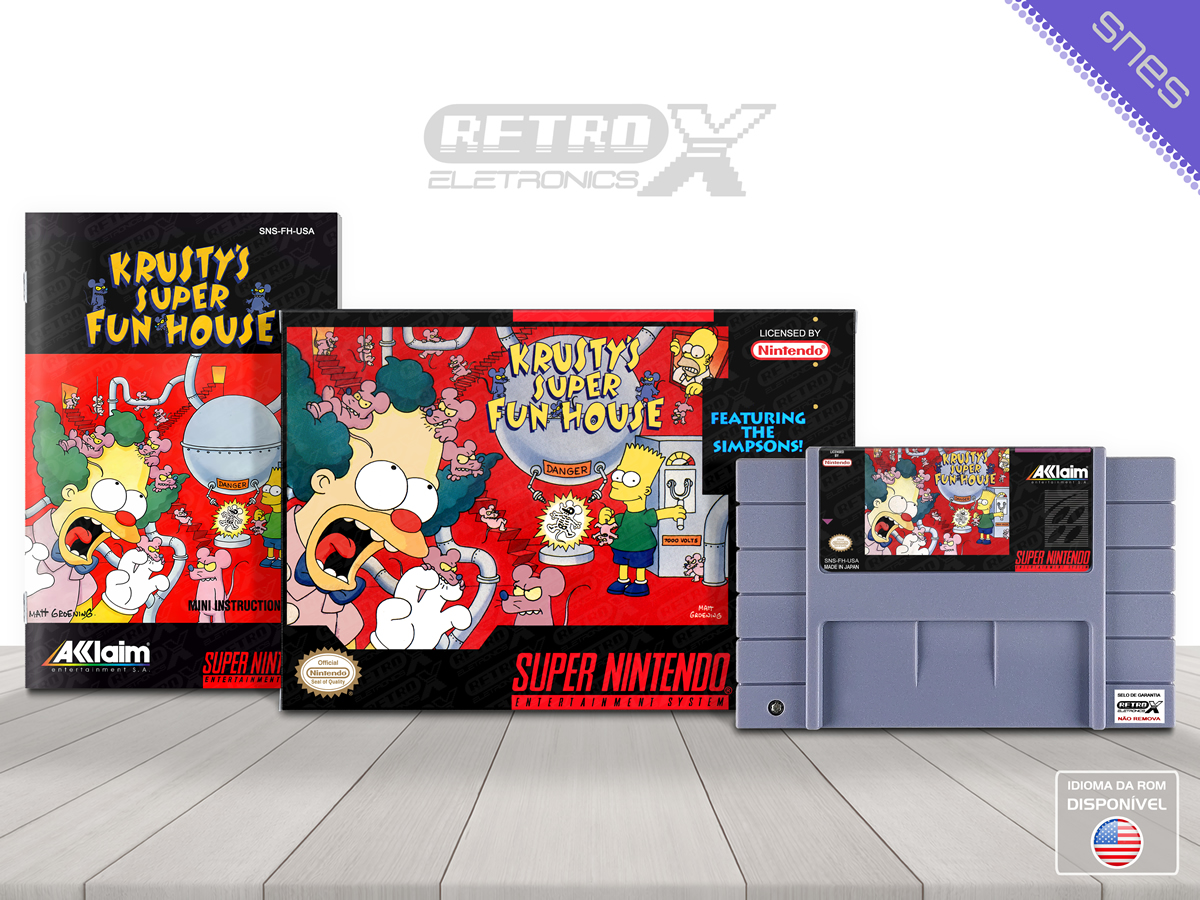Com jogabilidade focada em lógica e raciocínio, *Krusty’s Super Fun House* combina elementos de plataforma com mecânicas de resolução de quebra-cabeças, proporcionando uma experiência divertida e desafiadora. O jogo apresenta gráficos coloridos e personagens conhecidos da série, criando uma atmosfera leve e divertida enquanto o jogador explora os diferentes níveis da casa de Krusty.