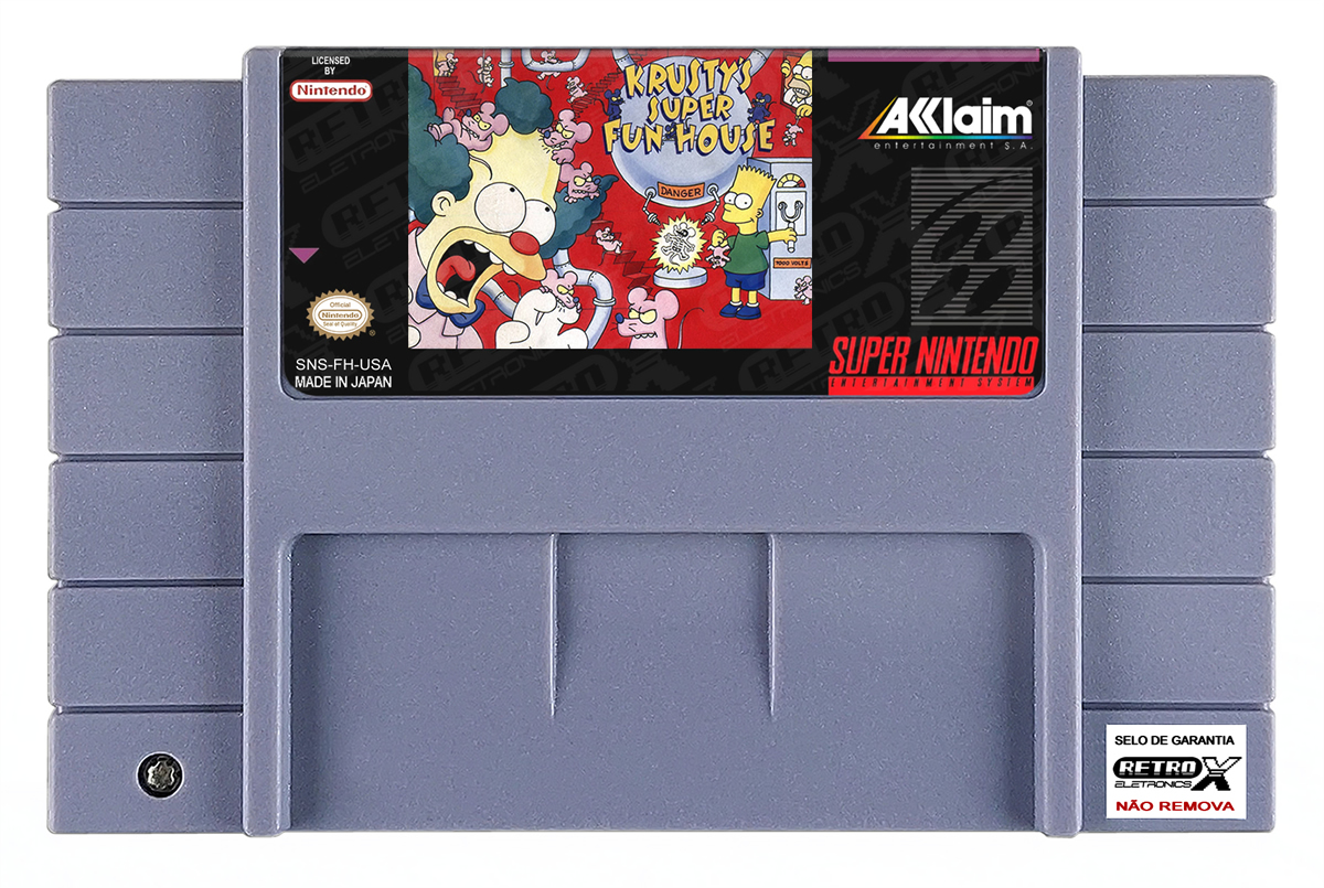 Krusty’s Super Fun House é um jogo de quebra-cabeças, plataforma lançado para o Super Nintendo Entertainment System (SNES) em 1994, desenvolvido pela Katsumi Sugihara e publicado pela Acclaim Entertainment. Baseado no famoso personagem de *Os Simpsons*, Krusty, o jogador deve ajudar o palhaço a organizar sua casa de diversão, resolvendo quebra-cabeças enquanto enfrenta inimigos e obstáculos. O objetivo é capturar ratos que invadiram sua casa de diversão, usando uma combinação de trampolins, transportadores e outros dispositivos para guiá-los para as armadilhas.