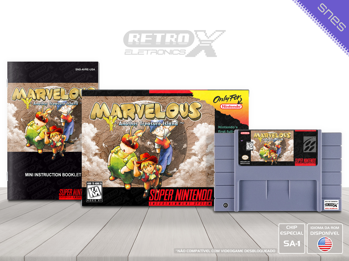 Marvelous: Another Treasure Island é um jogo de aventura, puzzle (quebra-cabeças) lançado para o Super Nintendo Entertainment System (SNES) em 1996, desenvolvido pela Nintendo. O jogo é frequentemente classificado como um *Action-RPG* e mistura mecânicas de exploração com resolução de quebra-cabeças, onde o jogador assume o controle de três personagens distintos, cada um com habilidades únicas necessárias para resolver enigmas e avançar na história.