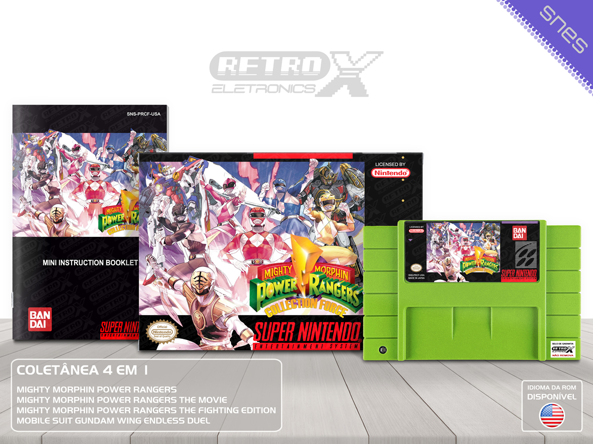A Mighty Morphin Power Rangers Collection Force é uma coletânea que reúne 4 jogos épicos baseados na famosa série de TV *Mighty Morphin Power Rangers* e *Mobile Suit Gundam Wing*, para o Super Nintendo Entertainment System (SNES). Com ação intensa e lutas entre heróis e vilões, essa coleção oferece aventuras emocionantes para os fãs das franquias.