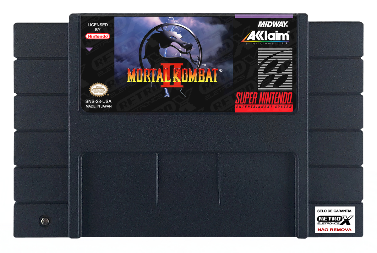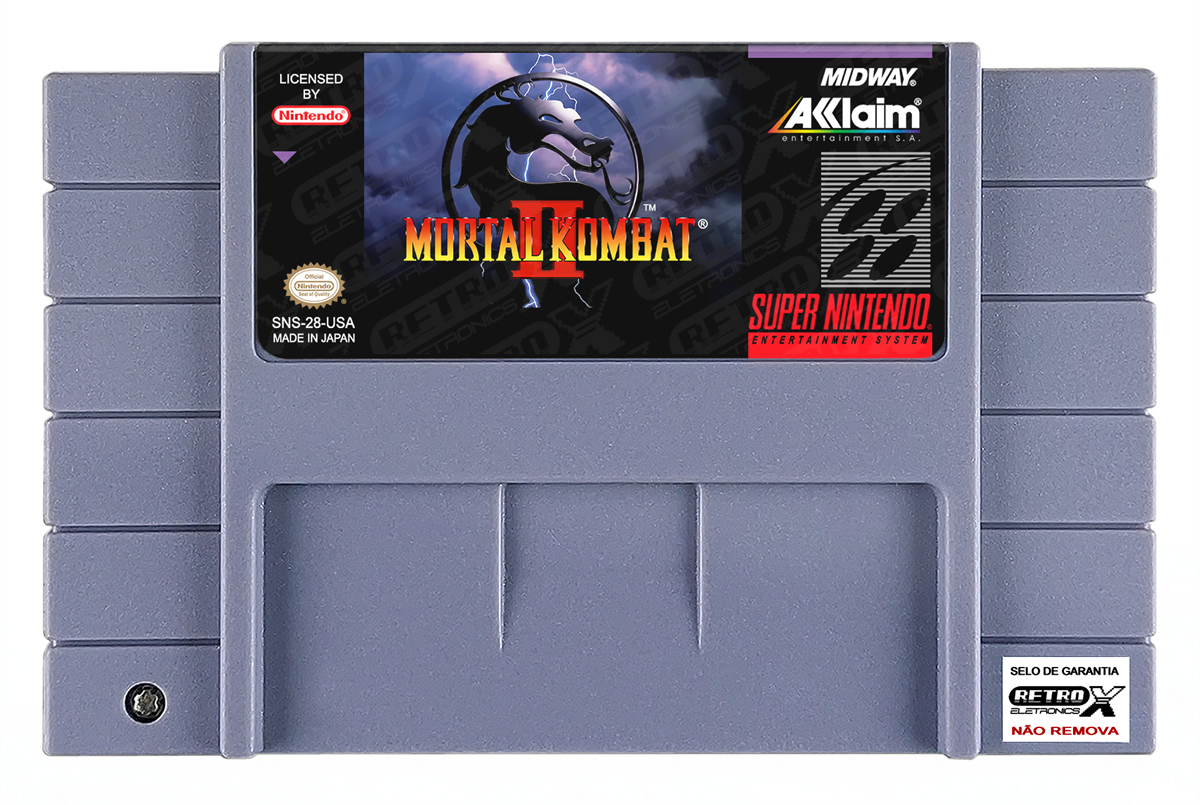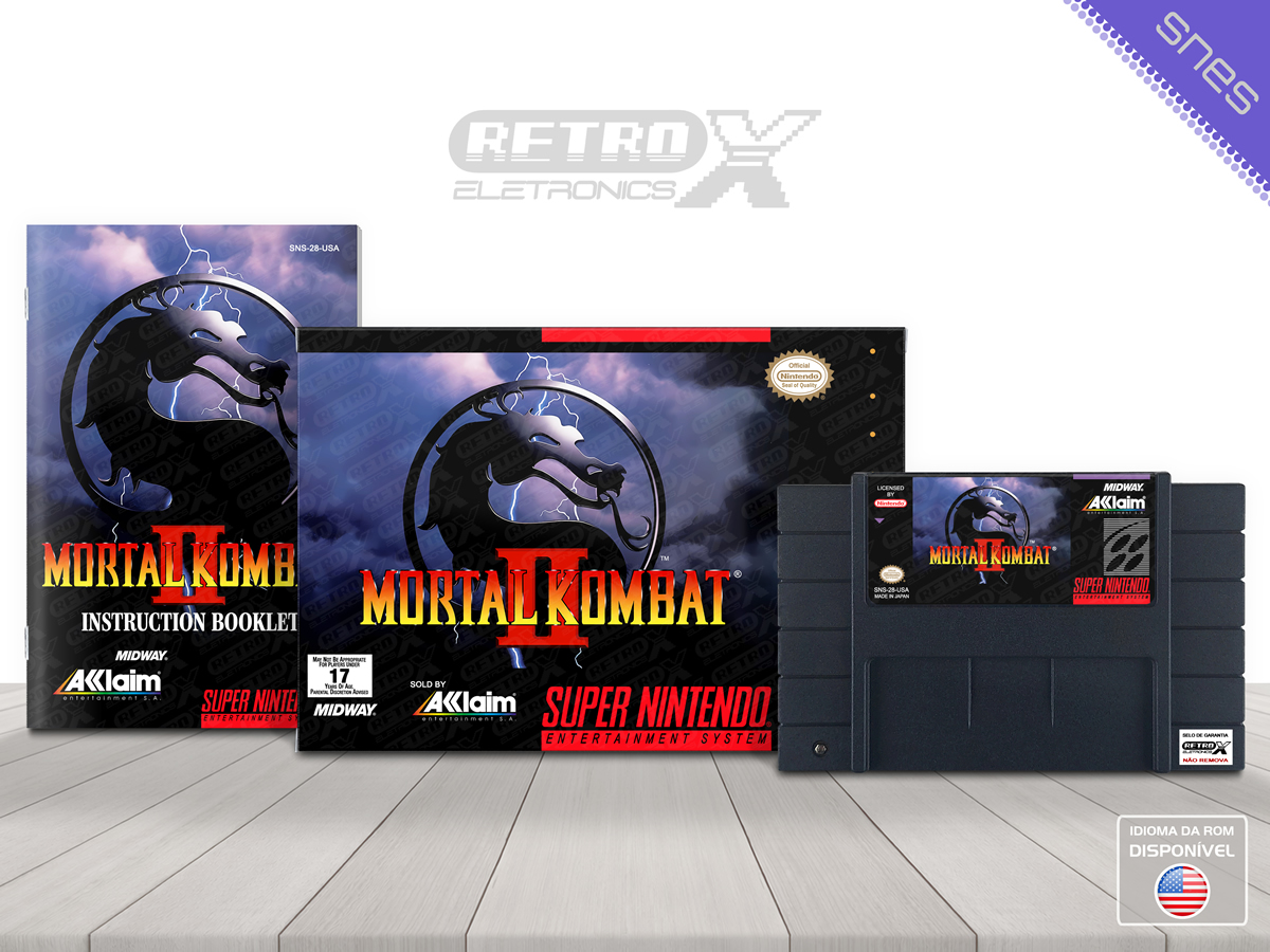 Mortal Kombat 2 é um jogo de luta lançado para o Super Nintendo Entertainment System (SNES) em 1994, desenvolvido pela Midway Games e publicado pela Acclaim Entertainment. A sequência do icônico *Mortal Kombat*, o jogo apresenta uma série de novos personagens, movimentos especiais e fatalidades, além de melhorar a jogabilidade e os gráficos do título anterior. O jogador pode escolher entre uma variedade de lutadores, como Liu Kang, Scorpion, Sub-Zero, Raiden, entre outros, e enfrentará adversários em uma série de torneios para salvar o mundo e derrotar o maligno imperador Shao Kahn.