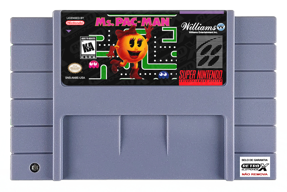 Ms. Pac-Man é um jogo de ação, labirinto lançado para o Super Nintendo Entertainment System (SNES) em 1993, desenvolvido pela Namco e publicado pela Midway Games. A sequência do clássico *Pac-Man*, *Ms. Pac-Man* coloca a protagonista Ms. Pac-Man em um novo conjunto de labirintos, onde ela deve comer todas as bolinhas e evitar os fantasmas que tentam capturá-la. O jogo traz novas características, como labirintos mais complexos e a introdução de frutas que oferecem bônus de pontos.