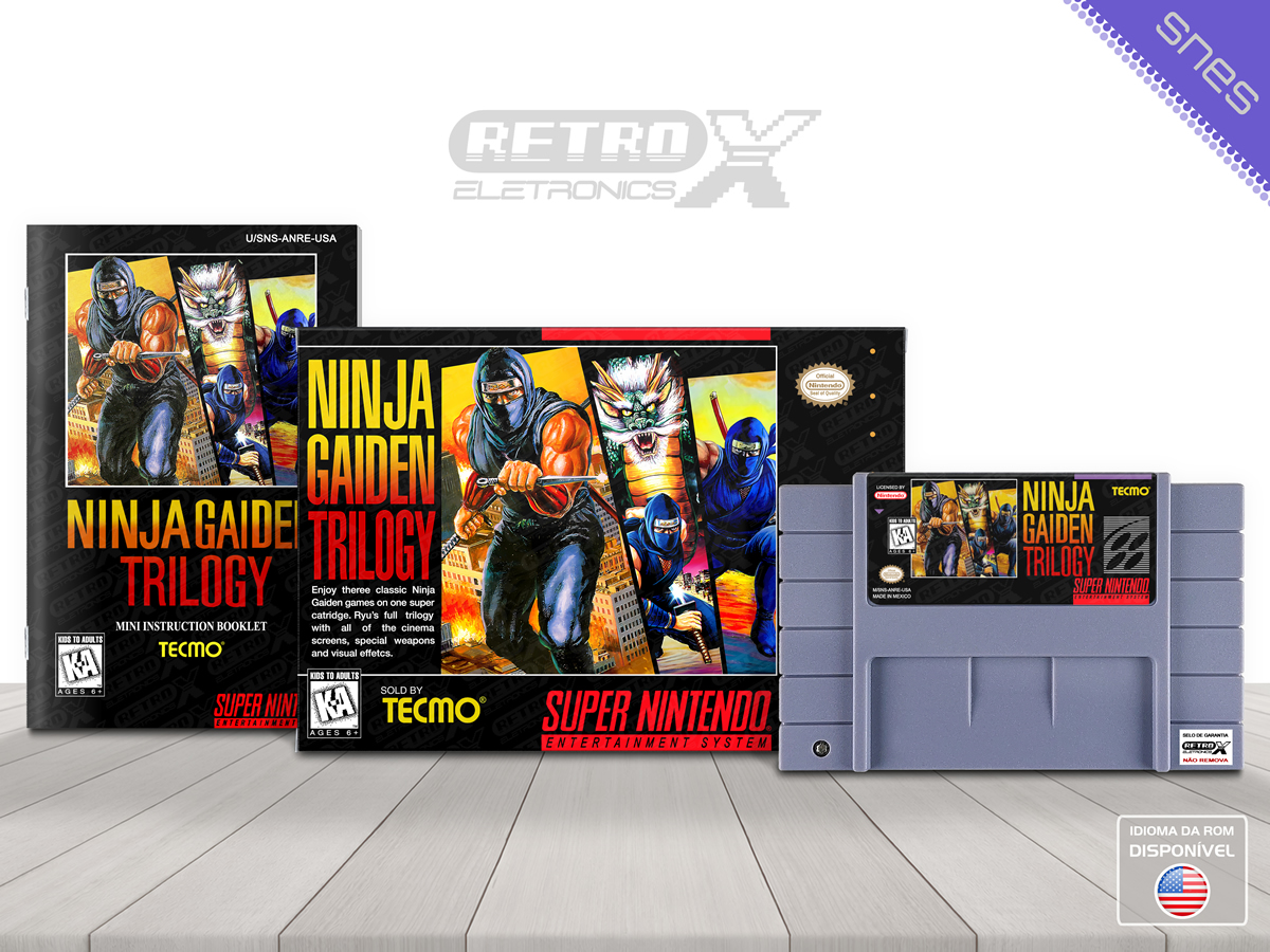 Ninja Gaiden Trilogy é uma coleção de ação, plataforma lançada para o Super Nintendo Entertainment System (SNES) em 1995, desenvolvida pela Tecmo e publicada pela Tecmo. Este título reúne as três edições clássicas da série *Ninja Gaiden*, oferecendo aos jogadores a chance de reviver as aventuras do ninja Ryu Hayabusa em uma coleção que traz as intensas batalhas e desafios das versões originais dos jogos lançados para o NES, com gráficos aprimorados e uma jogabilidade refinada para o SNES.
