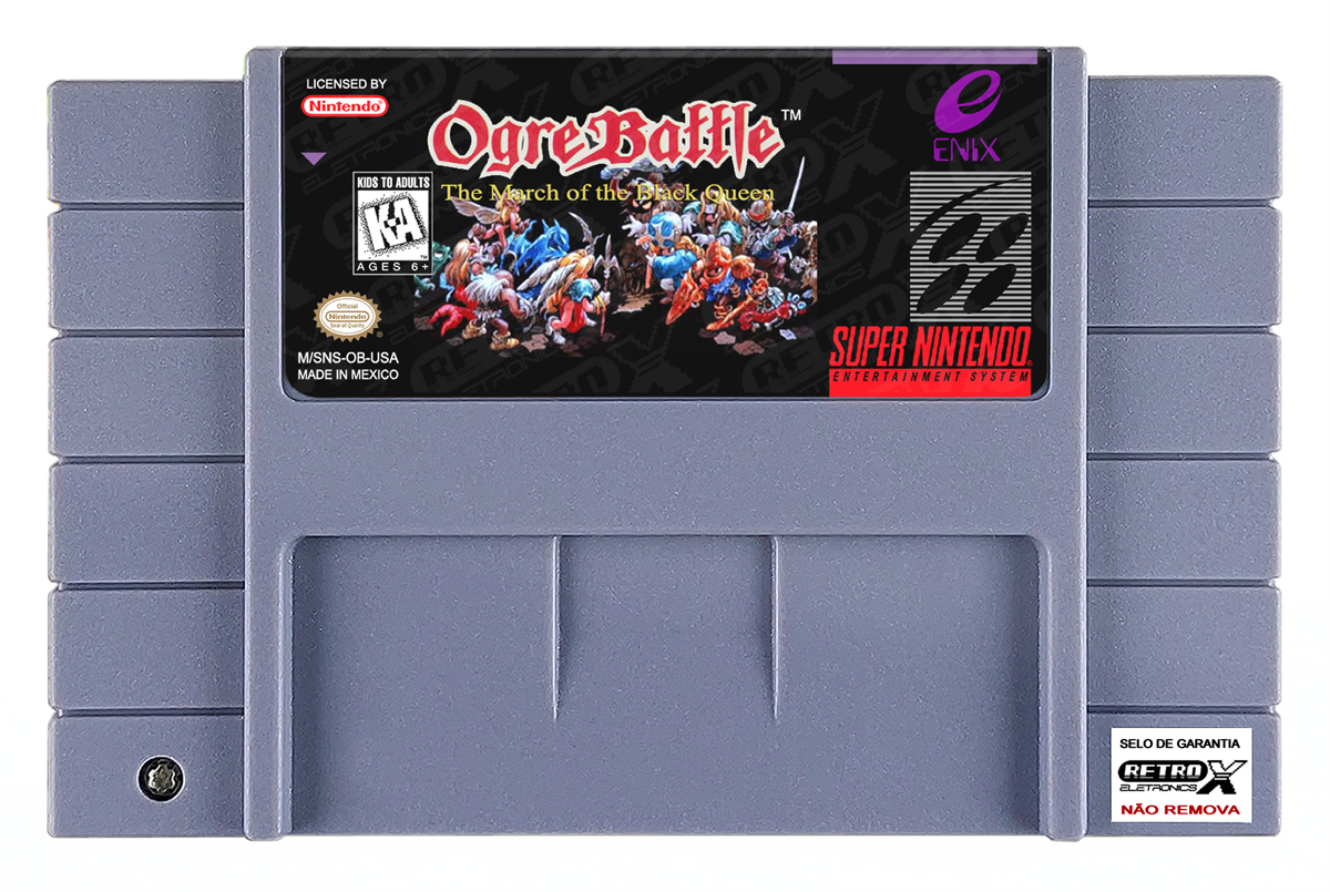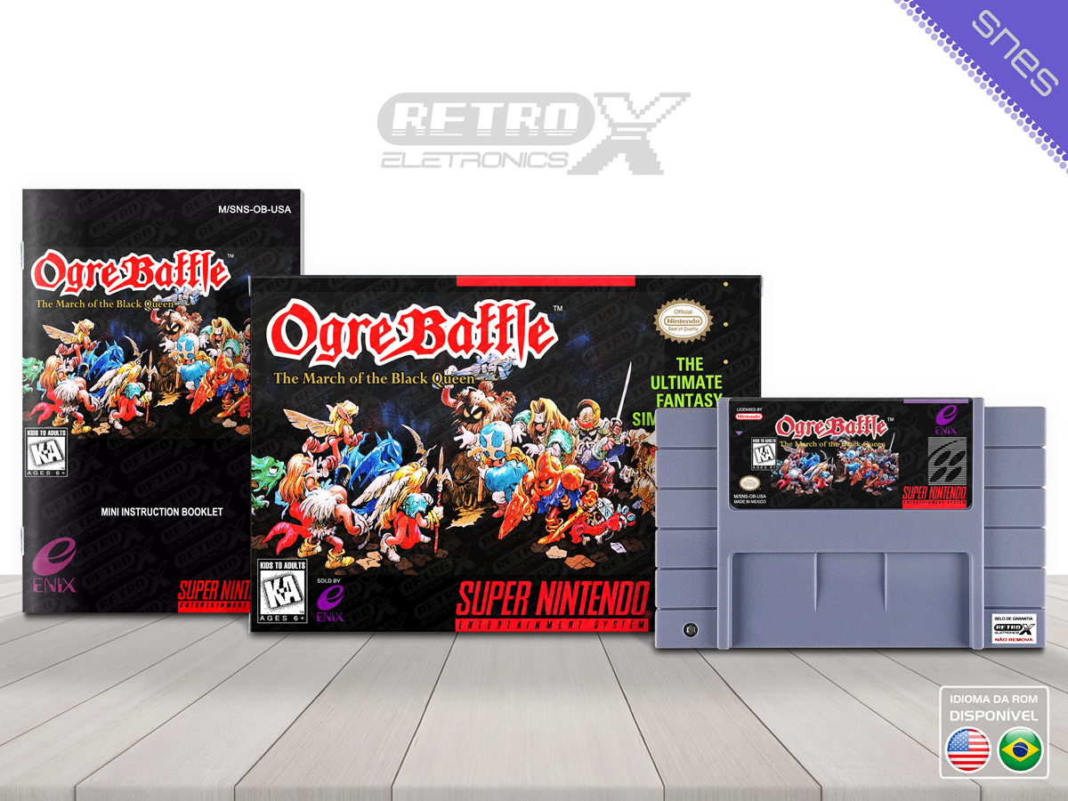 Ogre Battle: March of the Black Queen é um jogo de RPG tático lançado para o Super Nintendo Entertainment System (SNES) em 1993, desenvolvido pela Quest e publicado pela Enix. O jogo apresenta uma história épica em um mundo fictício, onde o jogador lidera um exército em uma guerra contra um império opressor, enquanto toma decisões cruciais que influenciam o desenrolar da trama. Com uma narrativa rica e um sistema de batalhas táticas em tempo real, *Ogre Battle* mistura elementos de RPG com estratégias militares.