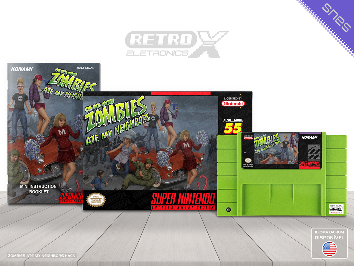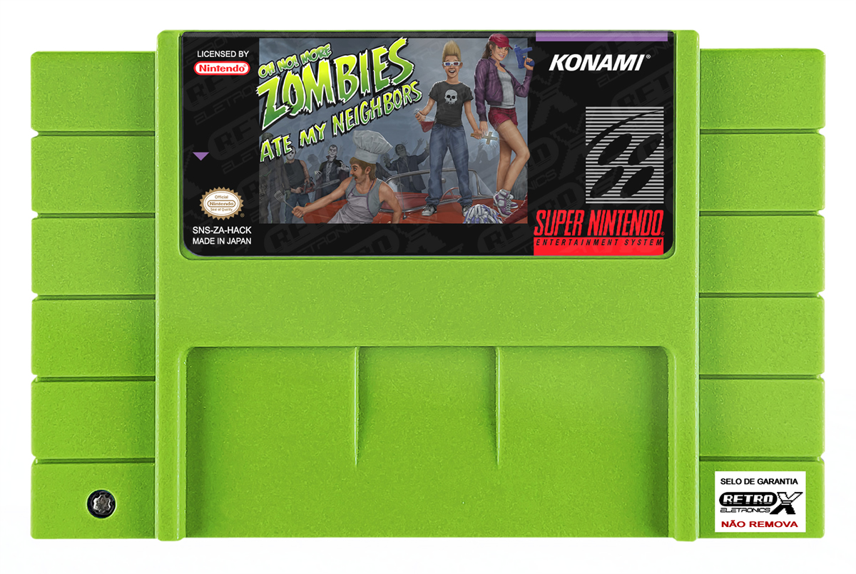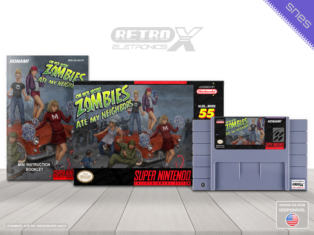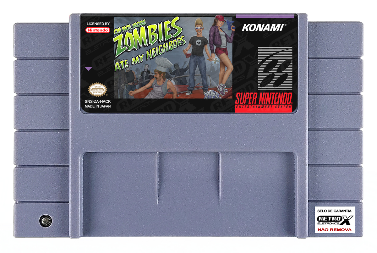 “Oh No! More Zombies Ate My Neighbors” é um *hack* de _Zombies Ate My Neighbors_ para Super Nintendo que funciona como uma sequência não oficial do jogo original, apresentando conteúdo totalmente novo e revisado. O *hack* inclui **55 níveis inéditos**, **itens e inimigos novos**, opções de jogabilidade revisadas e melhorias como ciclos invertidos de inventário. Além disso, ele adiciona armas extras (como a banana), novos inimigos como máquinas de refrigerante, níveis bônus extras e ajustes gerais em desafios e progressão para ampliar a experiência de ação e aventura no estilo clássico de *Zombies Ate My Neighbors*. Gênero: Ação