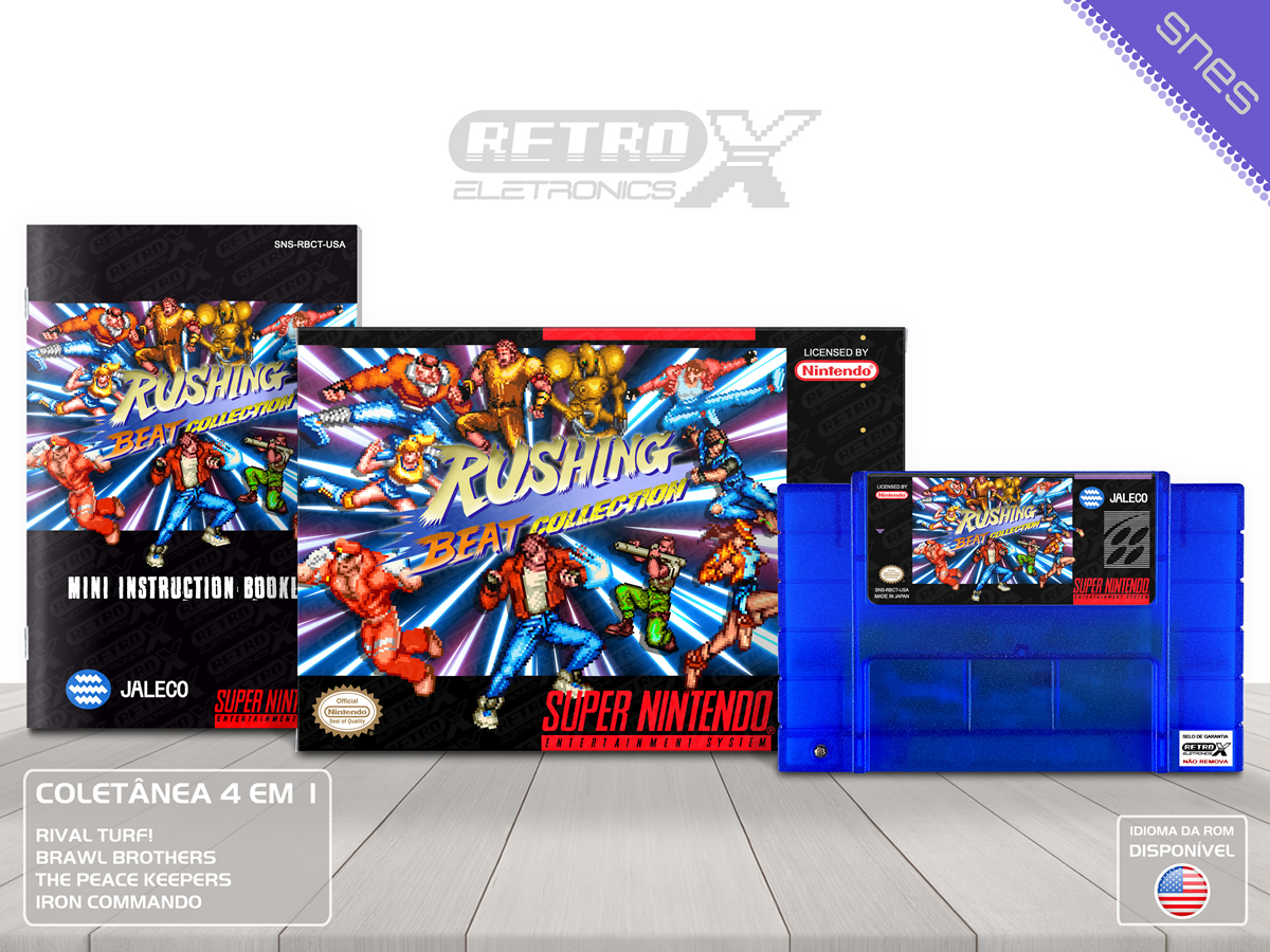 A Rushing Beat Collection é uma coletânea que traz 4 grandes jogos de luta e ação do gênero beat ‘em up para o Super Nintendo Entertainment System (SNES). Com batalhas de rua intensas e personagens carismáticos, essa coleção oferece uma experiência cheia de ação e desafios, enfrentando gangues e vilões em cenários urbanos e cheios de perigos.