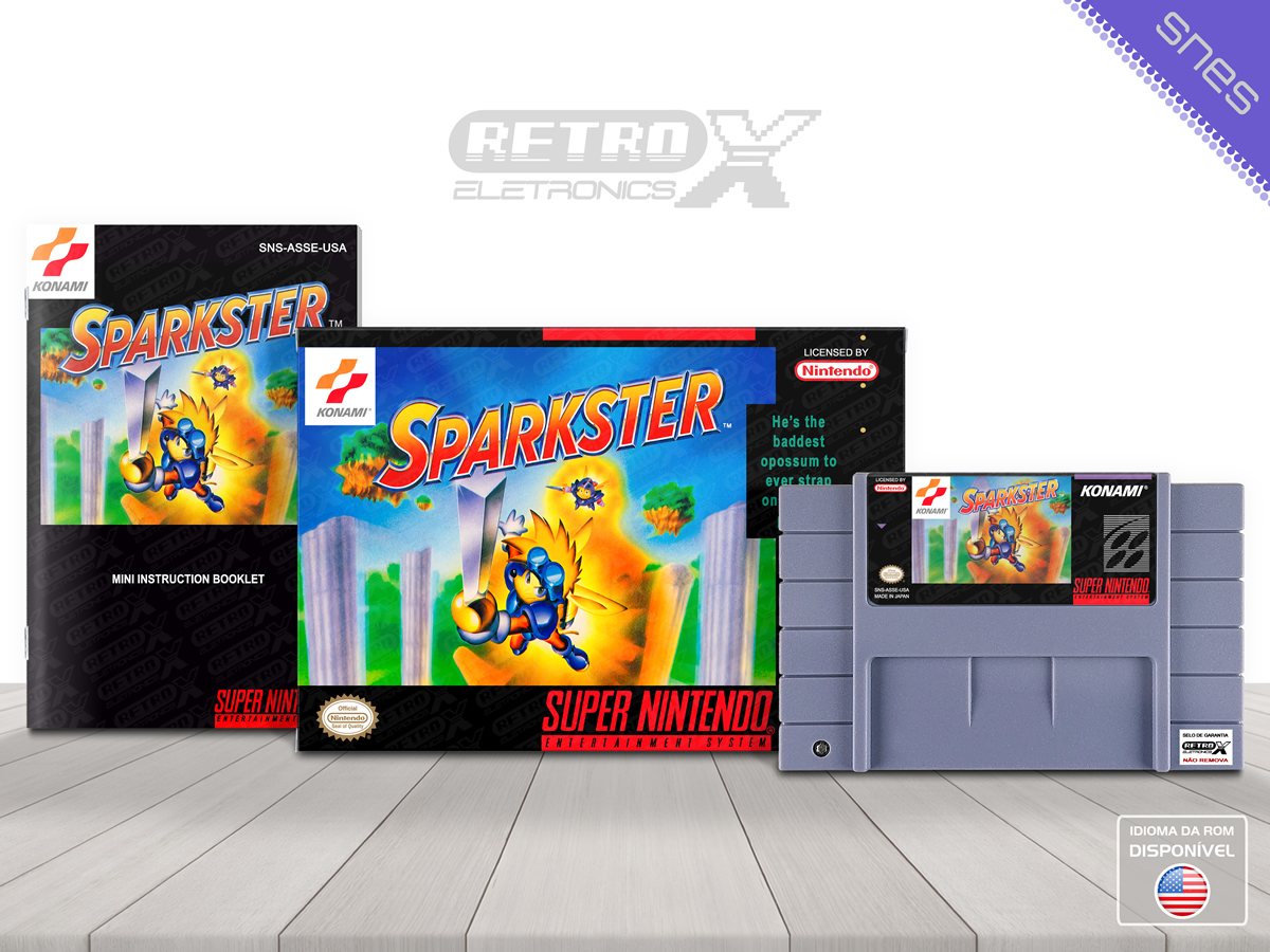 Sparkster é um jogo de plataforma e ação lançado para o Super Nintendo Entertainment System (SNES) em 1994, desenvolvido pela Konami. O jogo segue as aventuras de Sparkster, um ousado e heróico guaxinim, que usa um foguete nas costas para voar e enfrentar inimigos em sua missão para salvar o reino e derrotar o mal. *Sparkster* é o sucessor de *Rocket Knight Adventures* (Mega Drive) e traz uma jogabilidade dinâmica, repleta de ação e desafios emocionantes.
