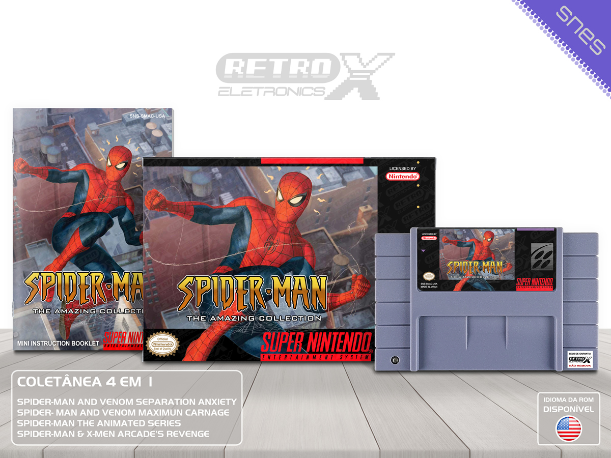 A Spider-Man The Amazing Collection é uma coletânea que reúne 4 dos maiores jogos do Homem-Aranha e seus aliados para o Super Nintendo Entertainment System (SNES), com intensas aventuras de luta e ação. Com vilões icônicos e histórias que seguem o universo do Homem-Aranha, essa coleção traz diversão, desafios e muito mais.