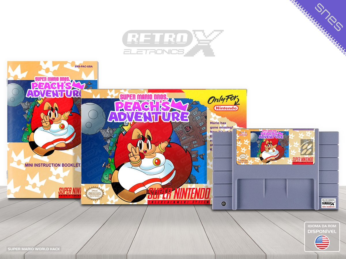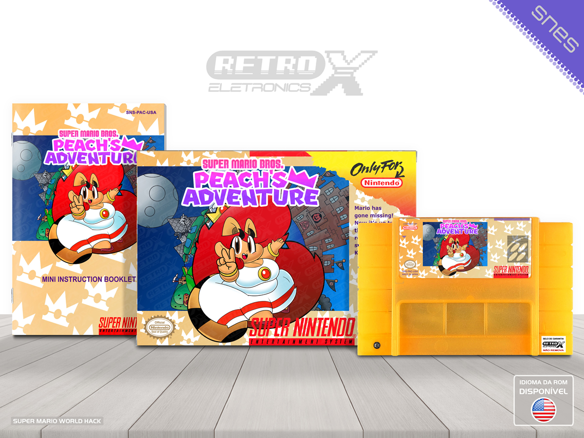 “Super Mario Bros Peach’s Adventure” é um *hack* de _Super Mario World_ para Super Nintendo em que a **Princesa Peach** se torna protagonista em uma aventura própria após ser encontrada inconsciente longe de seu castelo e resgatada por Toad, que então a ajuda a enfrentar desafios em fases redesenhadas e temáticas enquanto ela busca retornar ao Reino dos Cogumelos. O *hack* traz múltiplos níveis personalizados com caminhos criativos e variedade de ambientes baseados no clássico estilo de plataforma lateral, mantendo os elementos tradicionais de jogo que fizeram _Super Mario World_ um dos favoritos dos fãs de SNES. Gênero: Plataforma
