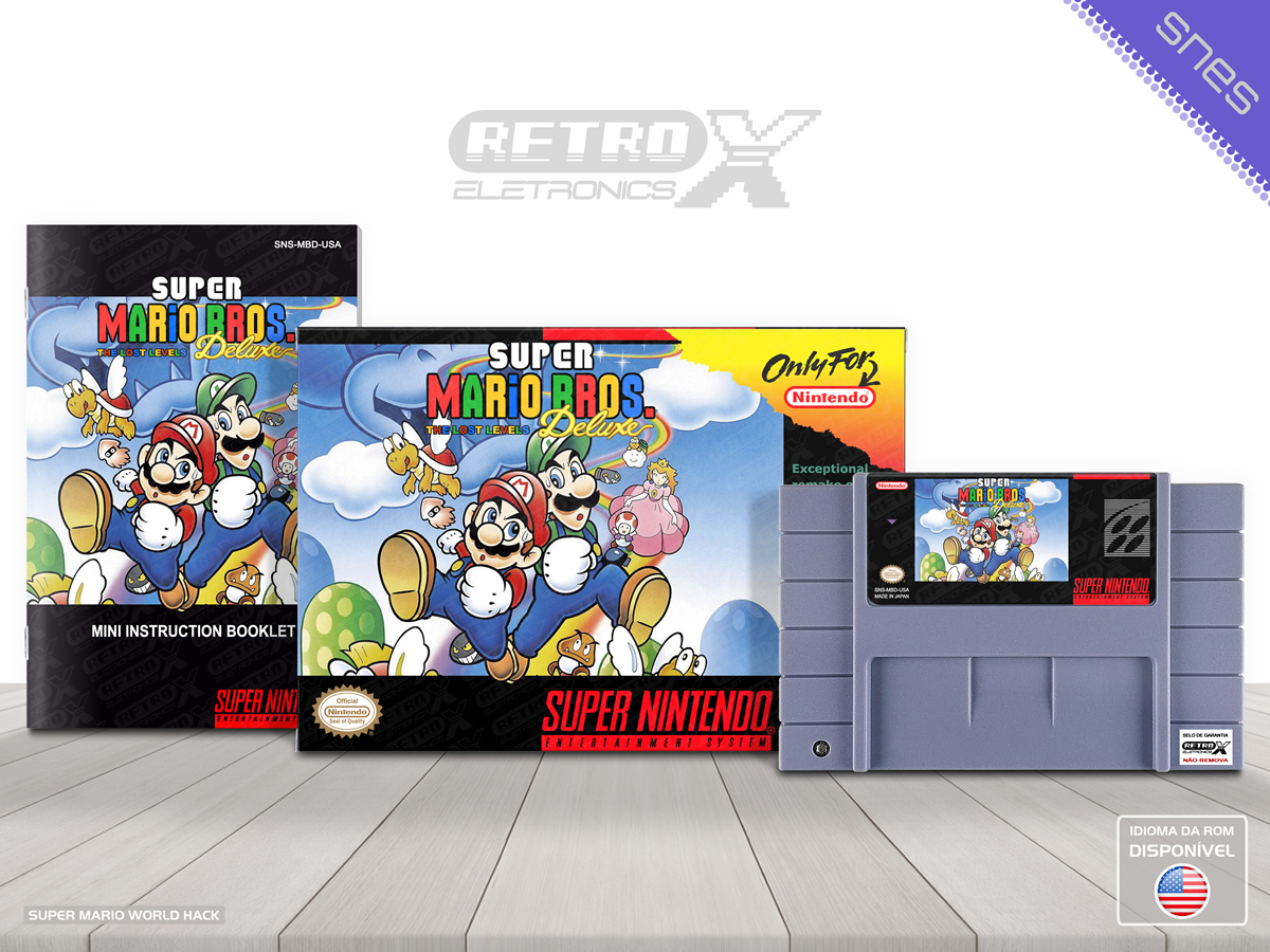 “Super Mario Bros: The Lost Levels Deluxe” é um *hack* de _Super Mario World_ para Super Nintendo que traz uma **remake dos 52 níveis de “Super Mario Bros.: The Lost Levels”** do NES, recriados dentro do motor de jogo de _Super Mario World_. O *hack* apresenta gráficos e músicas no estilo de _Super Mario Bros. 3_, novos mundos, fases personalizadas adicionais, uso de capa e Yoshi, além de ambientes e desafios inspirados nos níveis originais, mas com design adaptado às mecânicas e estética de _Super Mario World_. Esta versão proporciona uma experiência nostálgica com uma dificuldade elevada e muitos obstáculos criativos ao longo dos níveis. Gênero: Plataforma