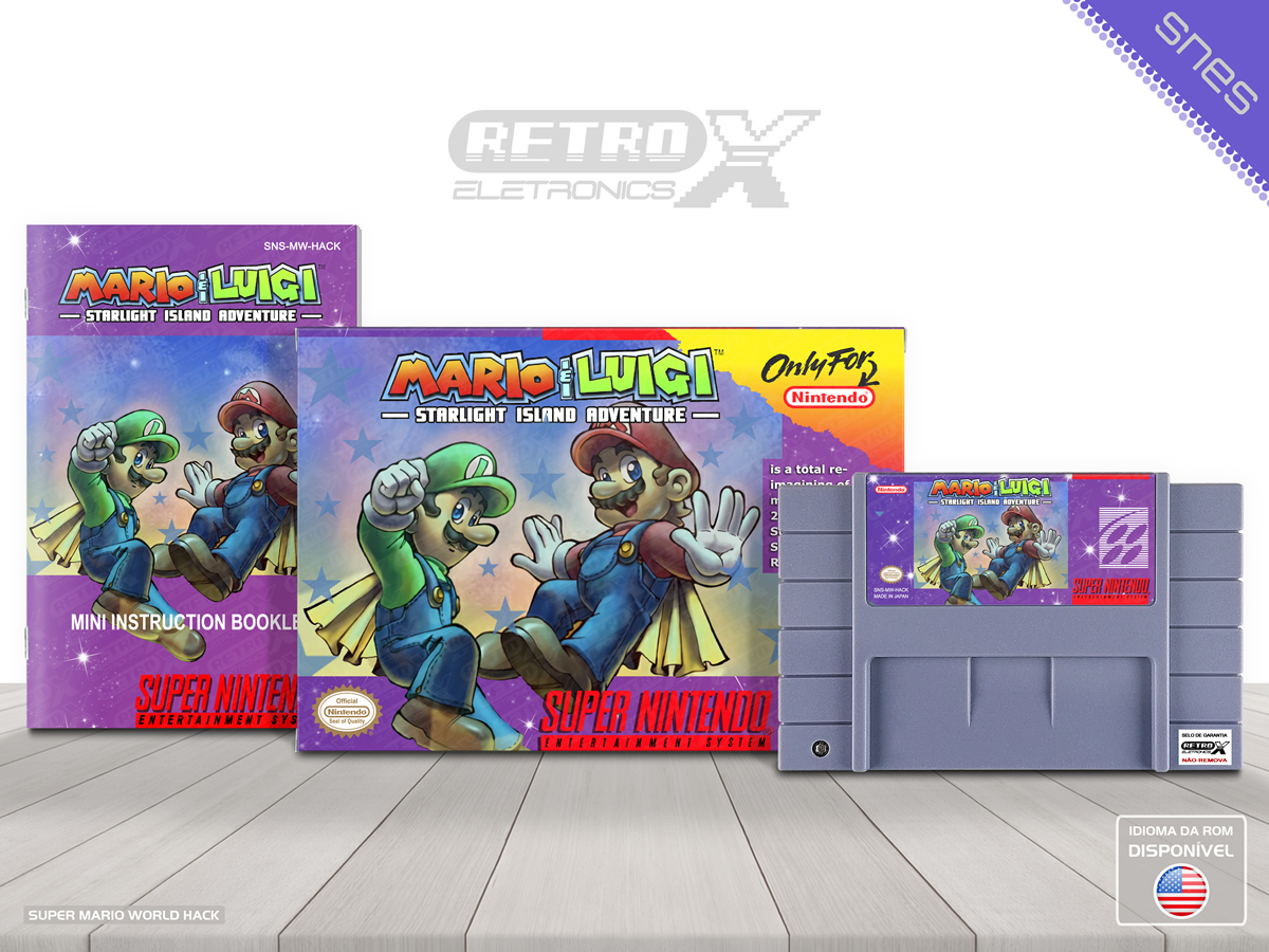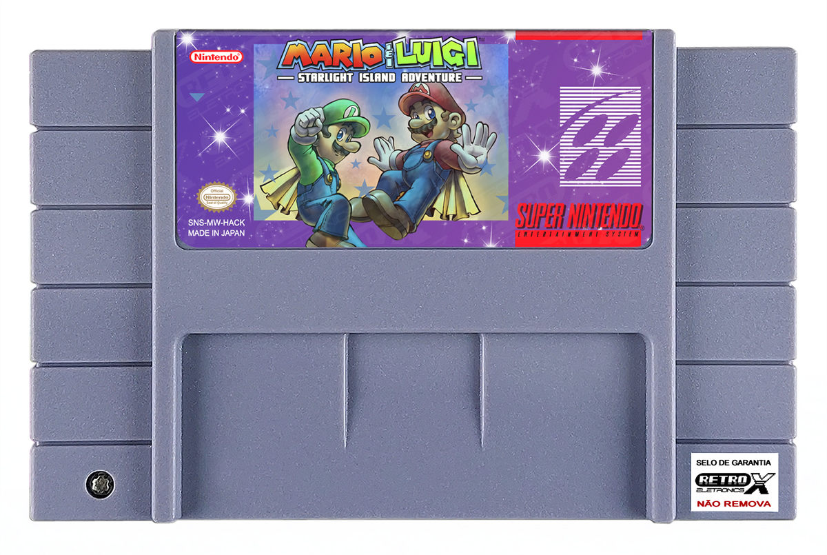 “Super Mario & Luigi: Starlight Island Adventure” é um *hack* de _Super Mario World_ para Super Nintendo criado por **Gamma V** que reinventa o jogo original com gráficos, músicas, sprites e blocos totalmente personalizados em uma aventura nova. O *hack* apresenta **44 níveis distribuídos em 8 mundos temáticos**, cada um com desafios e mecânicas únicas, mantendo a clássica jogabilidade de plataforma lateral. Fases e ambientes variados exigem habilidades de precisão e exploração, com dificuldade comparável ao jogo original e um design de níveis bem elaborado que oferece uma experiência divertida e desafiadora para fãs de jogos de plataforma clássicos. Gênero: Plataforma
