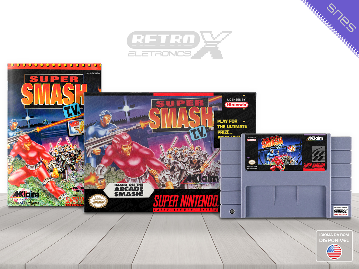 Super Smash TV é um jogo de ação lançado para o Super Nintendo Entertainment System (SNES) em 1990, desenvolvido pela Midway. O jogo é uma adaptação do clássico arcade de mesmo nome, onde os jogadores competem em uma arena mortal, lutando contra ondas de inimigos para ganhar prêmios e sobreviver o maior tempo possível. A premissa é simples: sobreviver ao caos de uma arena repleta de inimigos armados até os dentes.