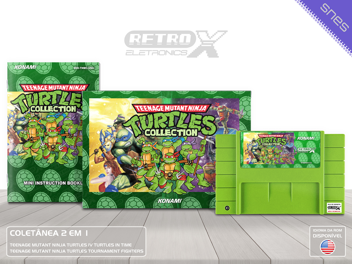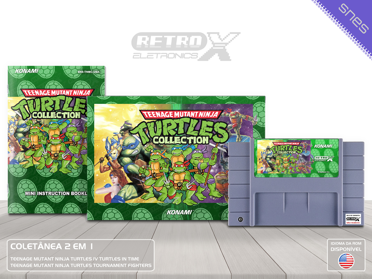 A Teenage Mutant Ninja Turtles Collection é uma coletânea que traz 2 grandes títulos das *Tartarugas Ninja* para o Super Nintendo Entertainment System (SNES). Com aventuras de ação e luta, essa coleção oferece duas experiências emocionantes com Leonardo, Donatello, Michelangelo e Raphael, enfrentando vilões e resgatando a cidade de Nova York.