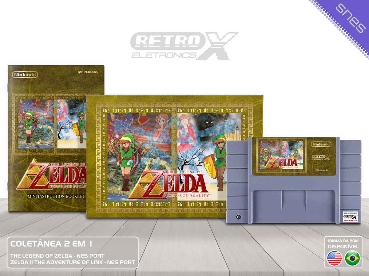 A The Legend of Zelda Triforce Duality é uma coletânea que traz dois dos maiores clássicos da franquia *Zelda*, com as versões originais do NES portadas para o Super Nintendo Entertainment System (SNES). Os jogos são executados da mesma forma que nas versões do NES, preservando a experiência clássica de jogo com o charme original, mas agora disponíveis para o SNES.
