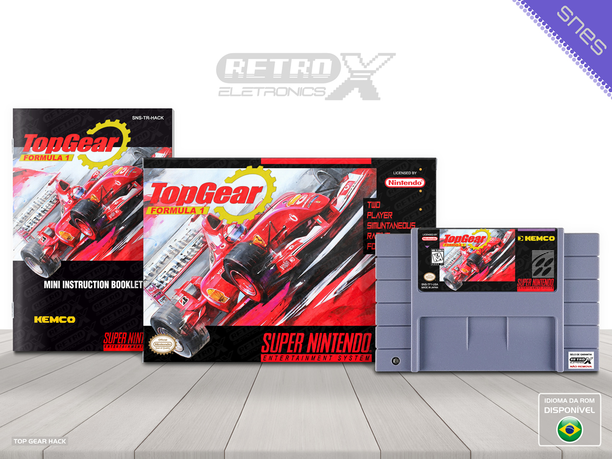 “Top Gear Formula 1” é um *hack* de _Top Gear_ para Super Nintendo criado pela **Equipe Falcon Brasil** e D83 Games que transforma o clássico jogo de corrida em uma experiência com **carros inspirados na Fórmula 1**. No *hack*, os veículos originais são substituídos por carros de F1 com sprites customizados, o som dos motores foi modificado para refletir o ronco característico dos carros de alta velocidade e os nomes de pilotos e pistas foram ajustados para remeter à atmosfera da Fórmula 1, oferecendo ao jogador uma corrida mais temática e diferenciada em relação ao original. Gênero: Corrida