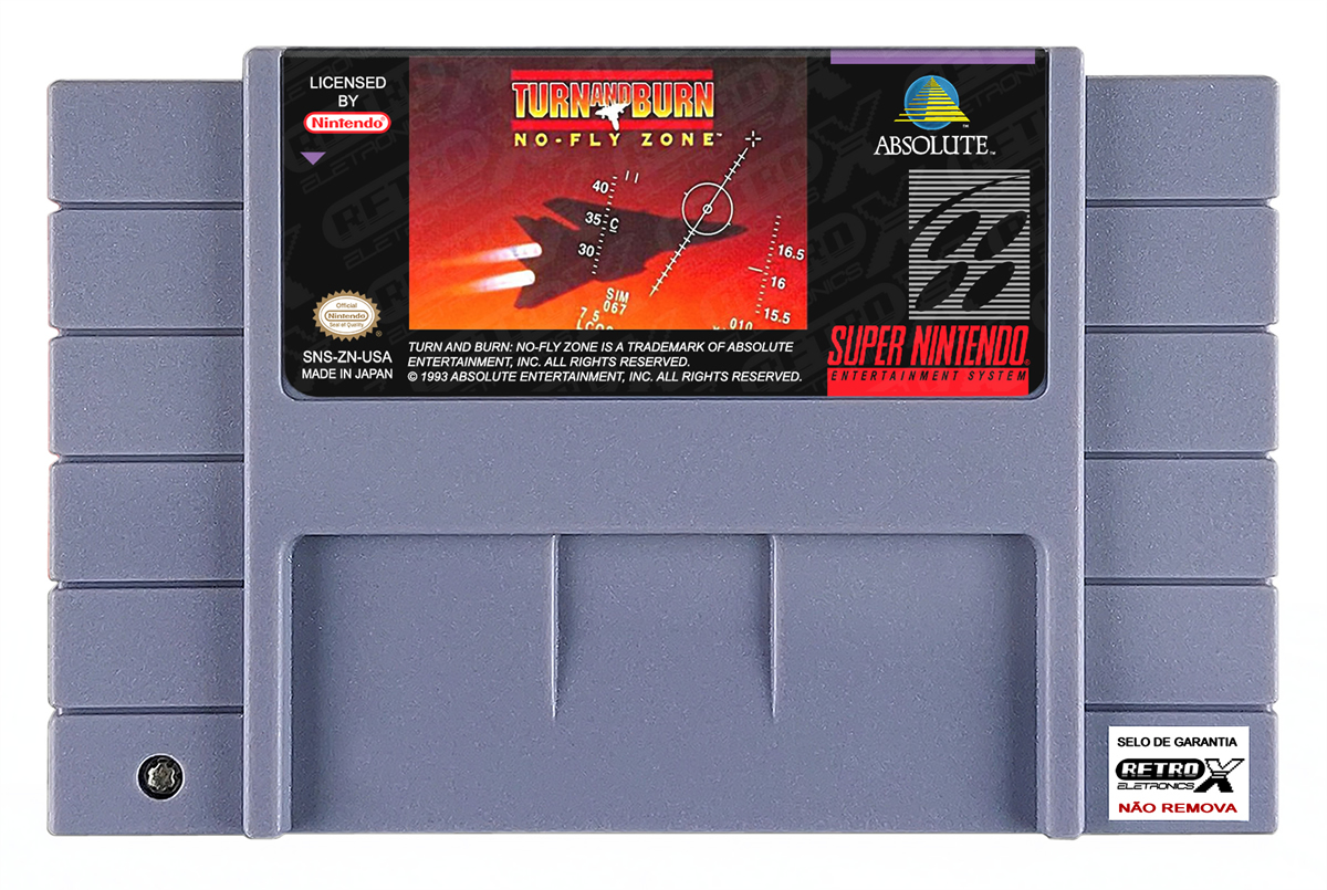 Turn and Burn: No-Fly Zone é um simulador de voo de combate lançado para o Super Nintendo Entertainment System (SNES) em 1993, desenvolvido pela **Imagineering/Absolute**. O jogo coloca o jogador no controle de um piloto de caça F‑14 Tomcat em várias missões aéreas, com gráficos pseudo‑3D e jogabilidade tática. A missão principal é completar objetivos militares enquanto enfrenta aviões inimigos em batalhas aéreas.