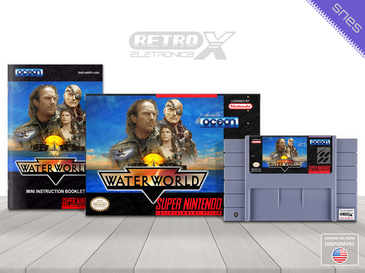 Waterworld é um jogo de ação e plataforma 2D lançado para o Super Nintendo Entertainment System (SNES) em 1995, desenvolvido pela **Ocean Software**. Baseado no filme de mesmo nome, o jogo coloca o jogador no controle de **Mariner**, um herói solitário que navega por um mundo pós-apocalíptico coberto por água, onde enfrenta piratas e realiza missões em busca de sobrevivência.