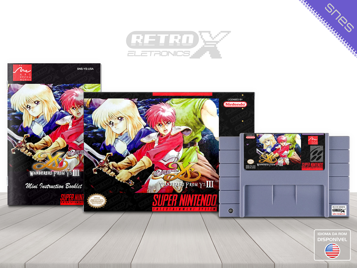 Ys III: Wanderers from Ys é um Action RPG lançado para o Super Nintendo Entertainment System (SNES) em 1991, desenvolvido pela **Nihon Falcom** e publicado pela **Titus**. O jogo é um side-scrolling RPG, focado em combate corpo a corpo com elementos clássicos de RPG. O jogador controla **Adol Christin**, o protagonista da série, em uma jornada repleta de batalhas e aventuras para derrotar inimigos e salvar o mundo.