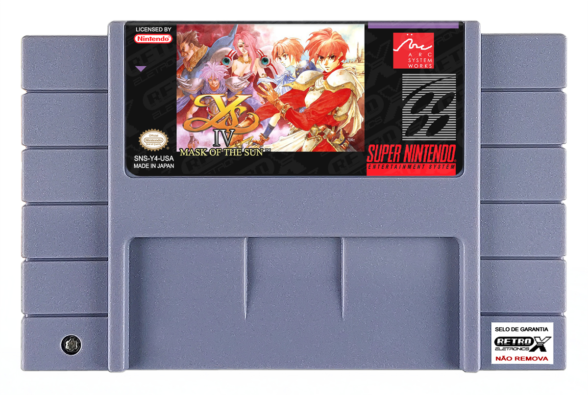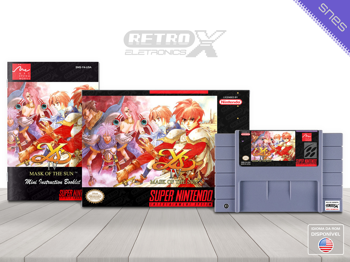 Ys IV: Mask of the Sun é um Action RPG lançado para o Super Nintendo Entertainment System (SNES) em 1993, desenvolvido pela **Falcom** e publicado pela **Taito**. O jogo segue a história de **Adol Christin**, o protagonista da série *Ys*, em uma nova aventura focada em combate rápido e exploração de cenários. *Mask of the Sun* se destaca por sua jogabilidade dinâmica e por uma história envolvente, que desafia o jogador a enfrentar inimigos e resolver enigmas enquanto avança pelas fases.